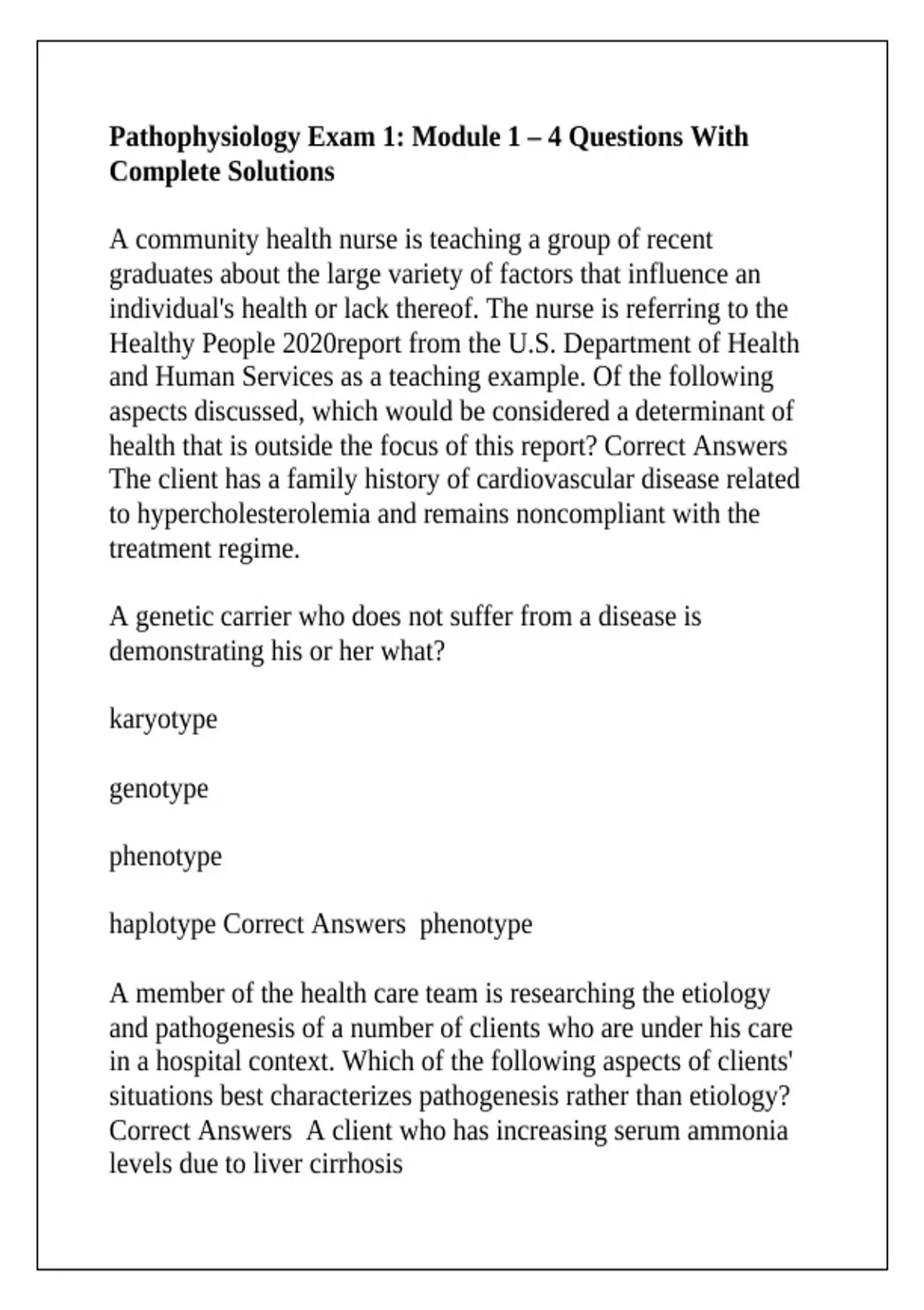 Pathophysiology Exam 1: Module 1 – 4 Questions With Complete Solutions