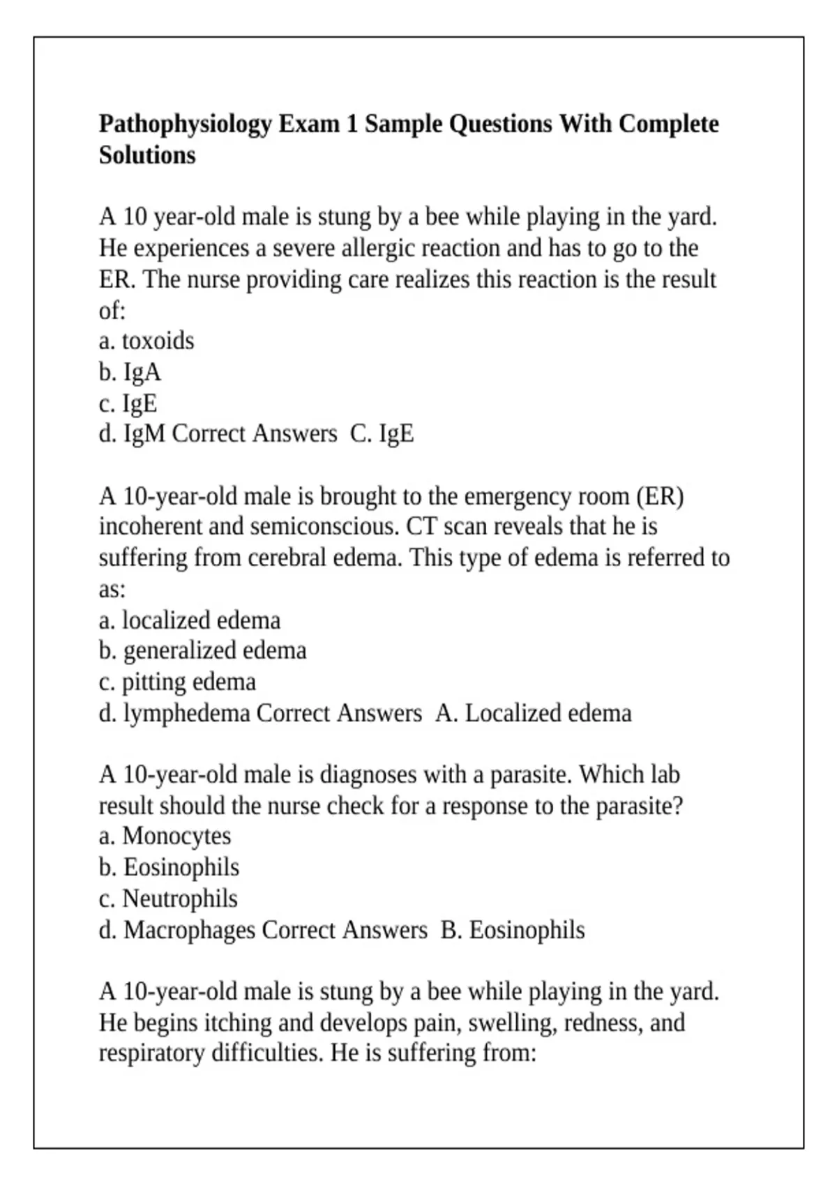 Pathophysiology Exam 1 Sample Questions With Complete Solutions