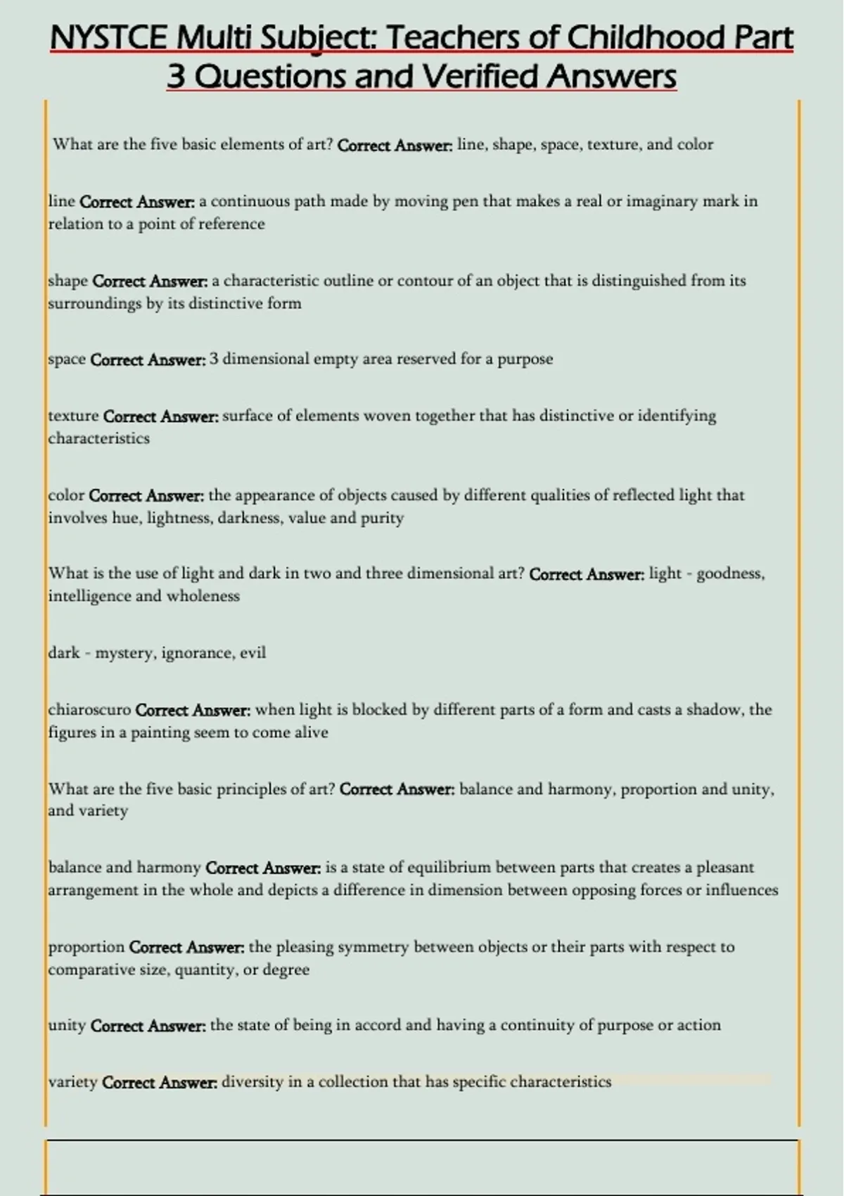 NYSTCE Multi Subject: Teachers of Childhood Part 3 Questions and Verified Answers