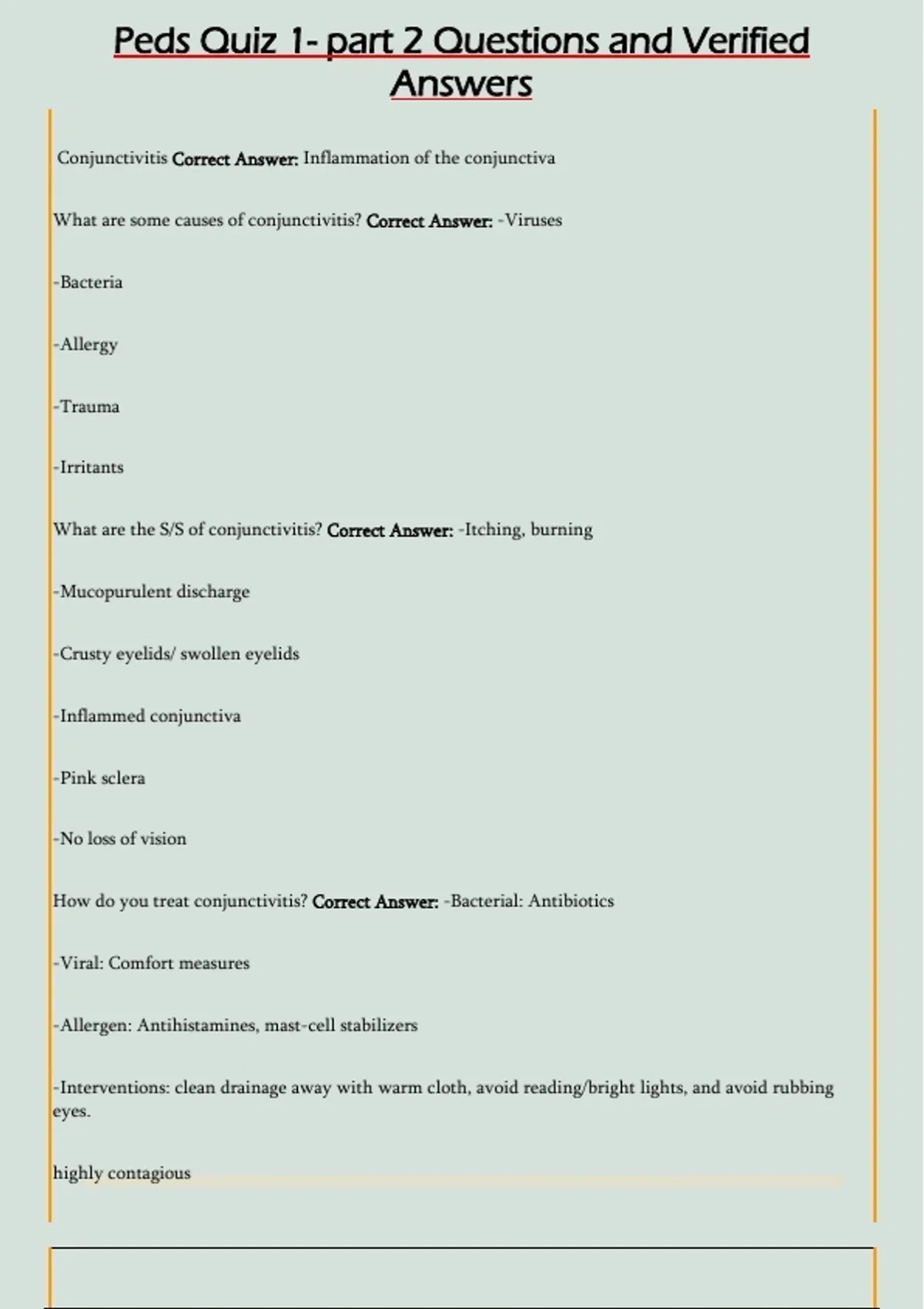 Peds Quiz 1- part 2 Questions and Verified Answers