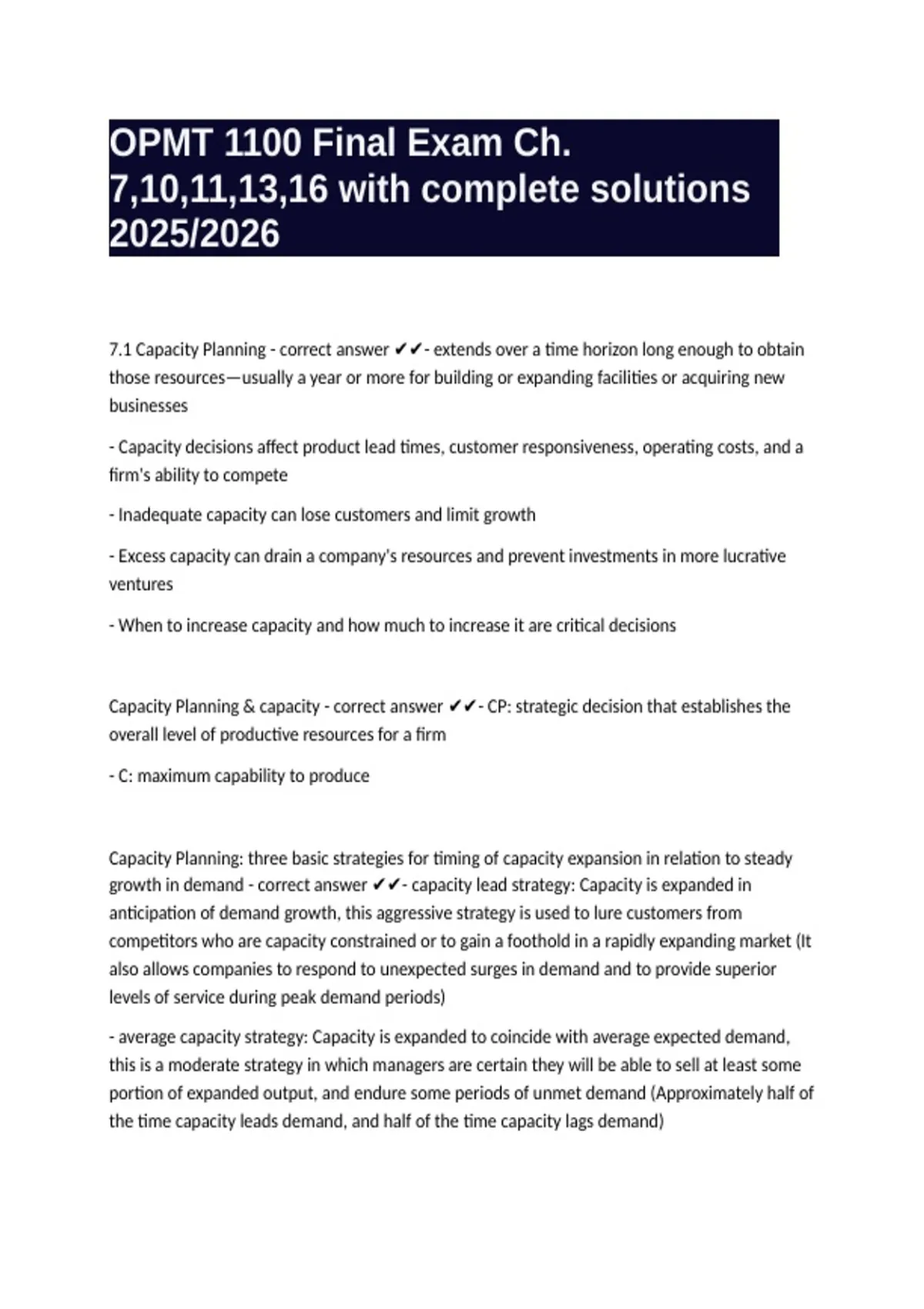 7.1 Capacity Planning - correct answer ✔✔- extends over a time horizon long enough to obtain