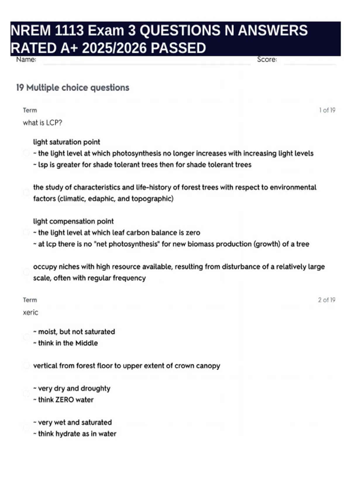 NREM 1113 Exam 3 QUESTIONS N ANSWERS RATED A+ 2025/2026 PASSED