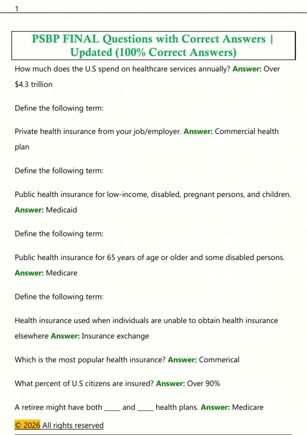 PSBP FINAL Questions with Correct Answers | Updated (100% Correct Answers)