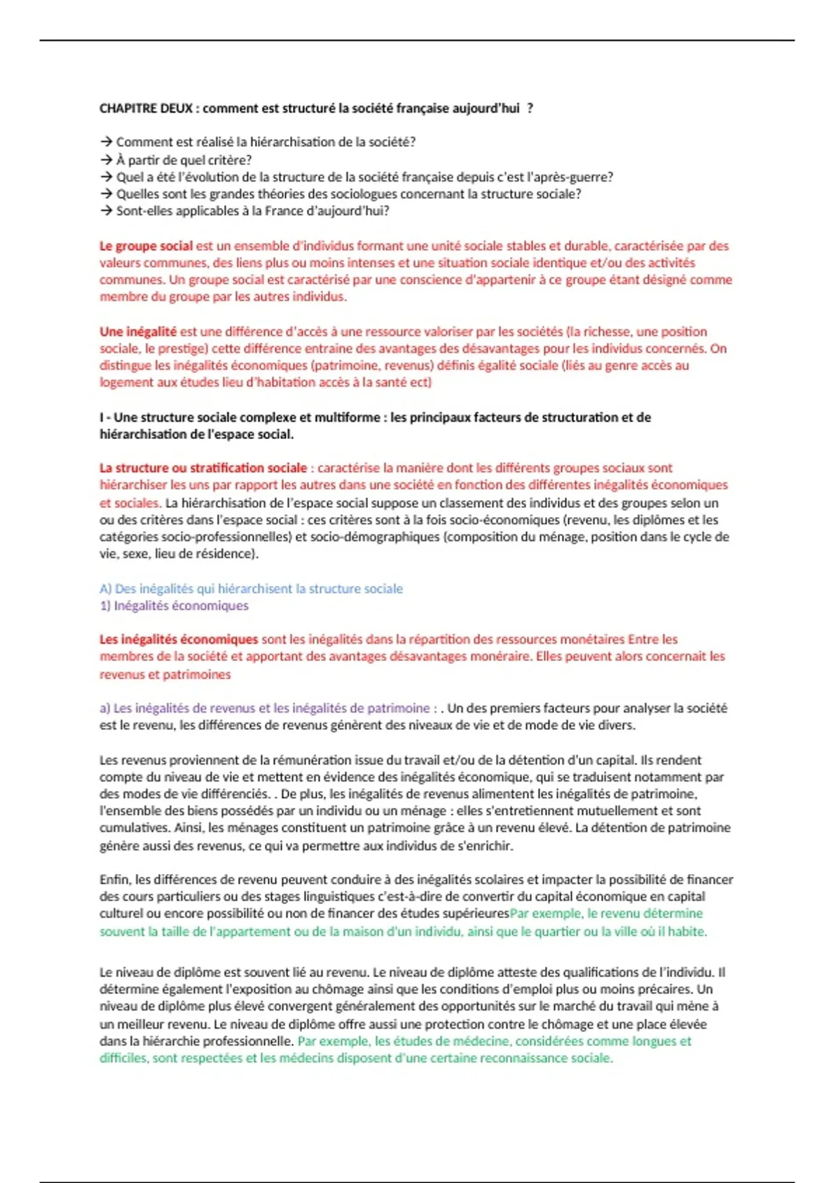 CHAPITRE DEUX : comment est structuré la société française aujourd’hui ?