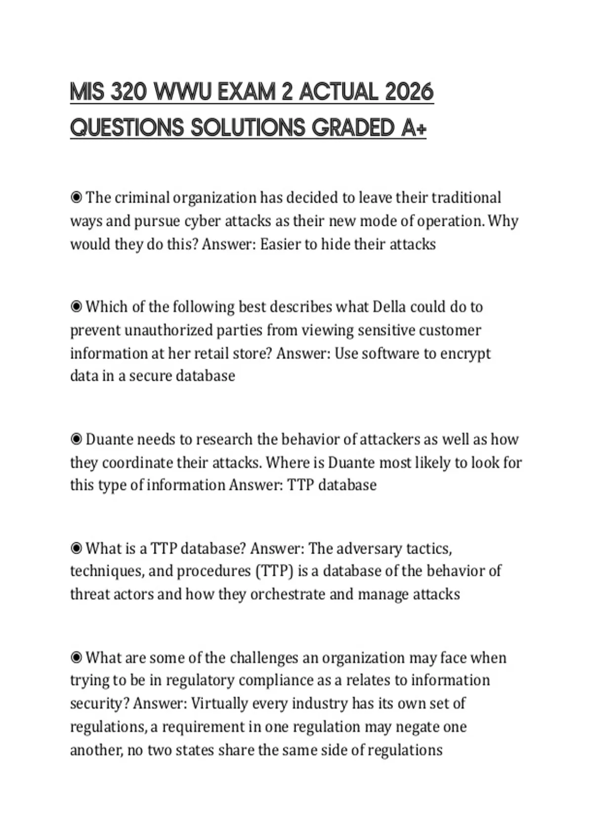 MIS 320 WWU EXAM 2 ACTUAL 2026 QUESTIONS SOLUTIONS GRADED A+