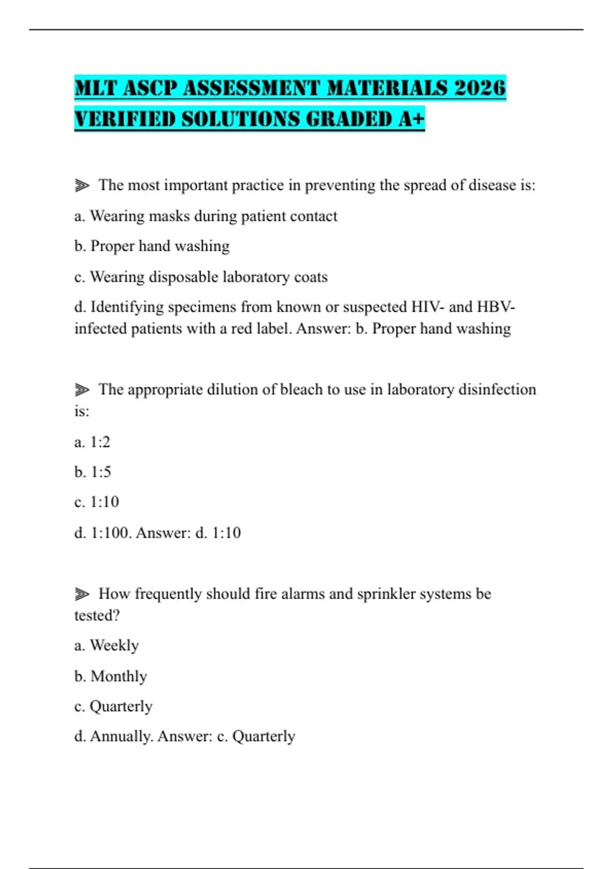 MLT ASCP ASSESSMENT MATERIALS 2026 VERIFIED SOLUTIONS GRADED A+