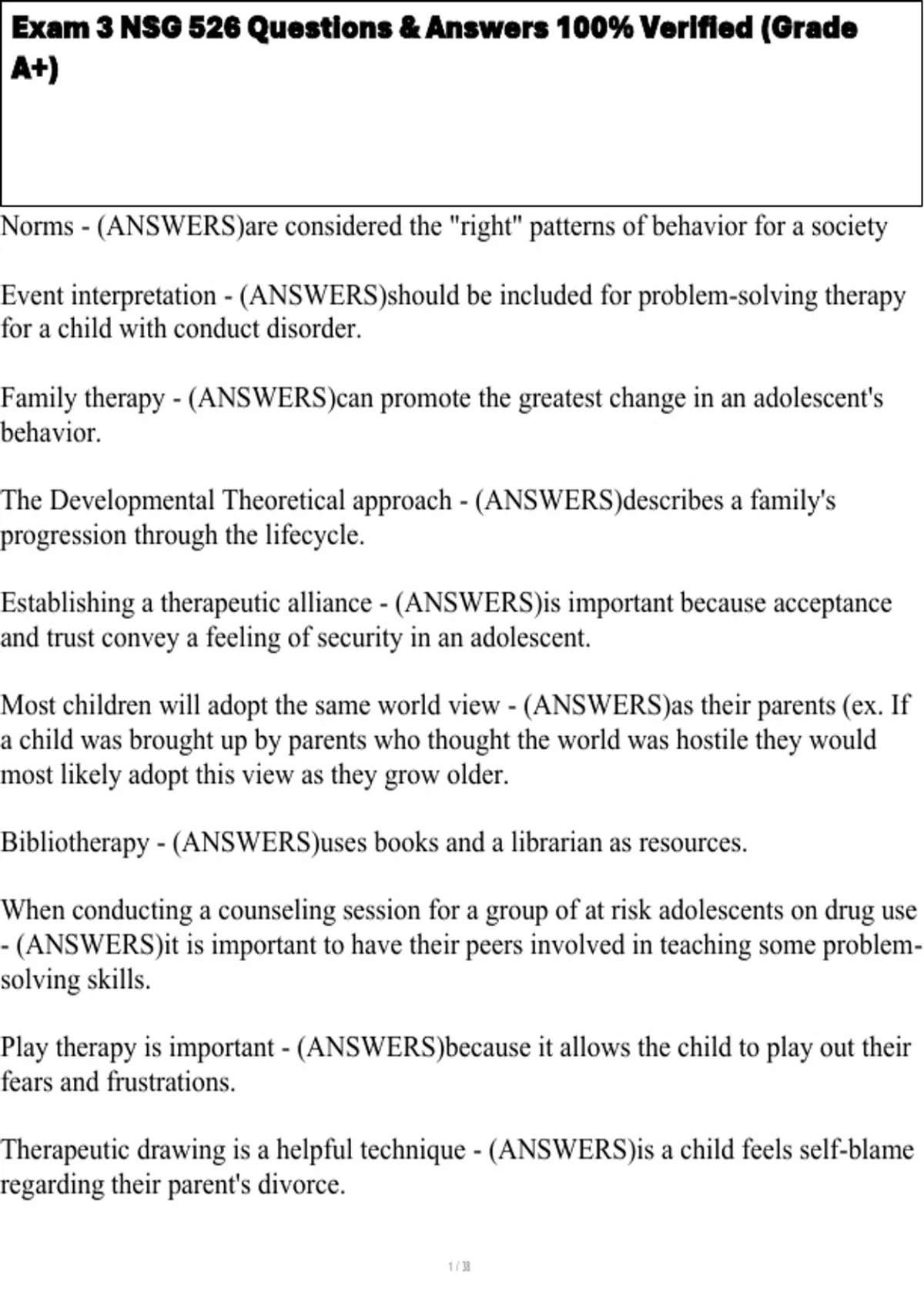 Exam 3 NSG 526 Questions & Answers 100% Verified (Grade