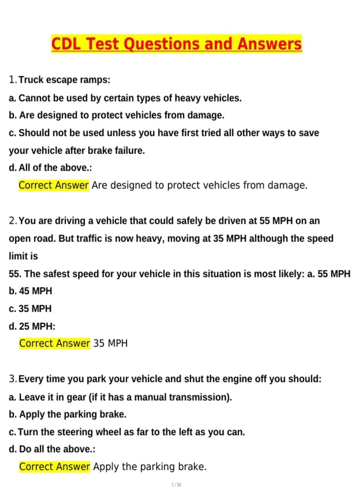 CDL Test Questions and Answers