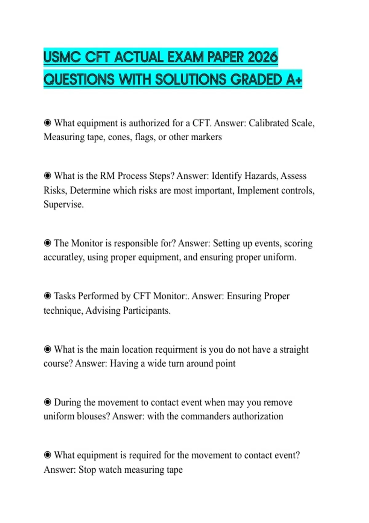 USMC CFT ACTUAL EXAM PAPER 2026 QUESTIONS WITH SOLUTIONS GRADED A+
