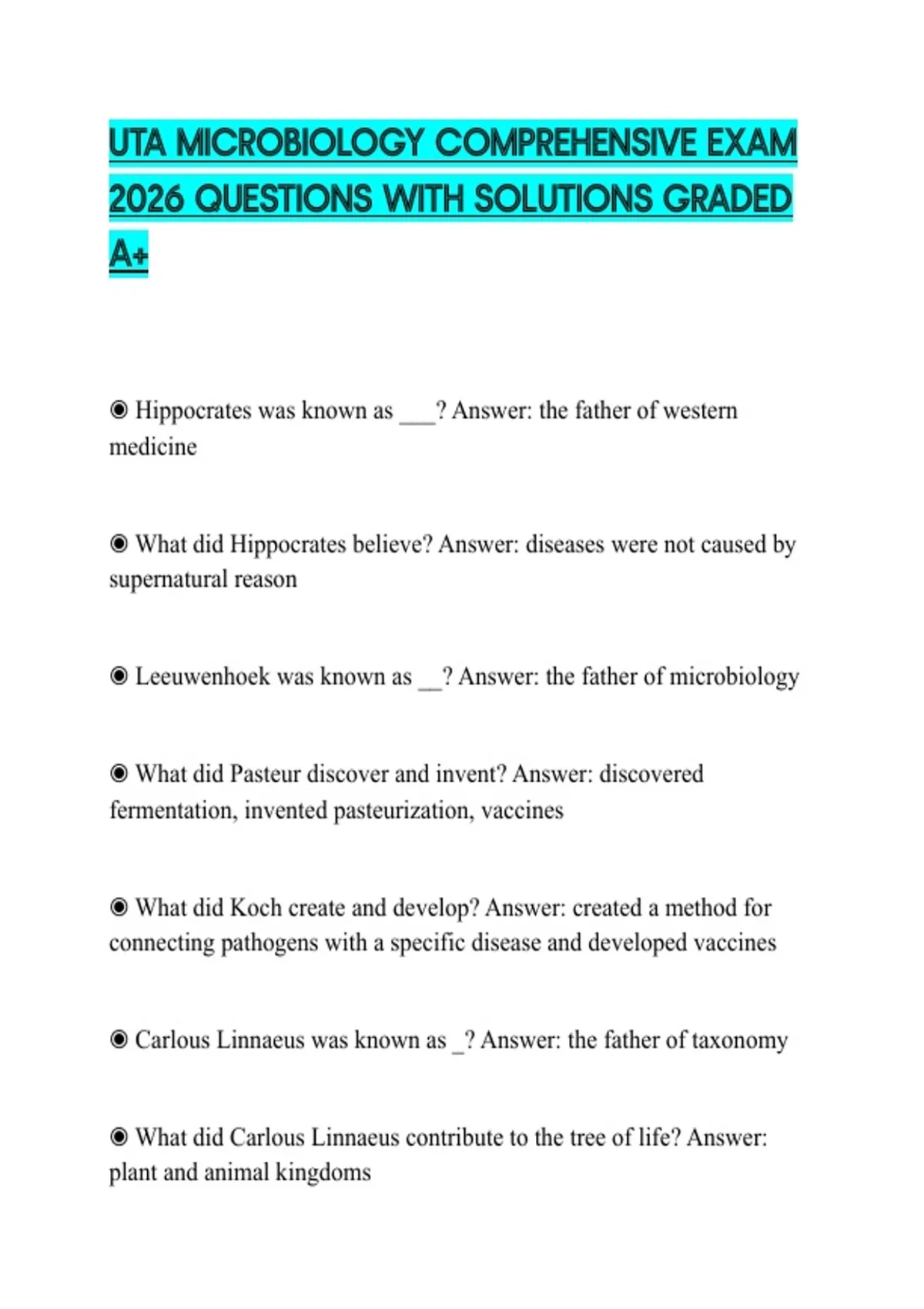 UTA MICROBIOLOGY COMPREHENSIVE EXAM 2026 QUESTIONS WITH SOLUTIONS GRADED A+