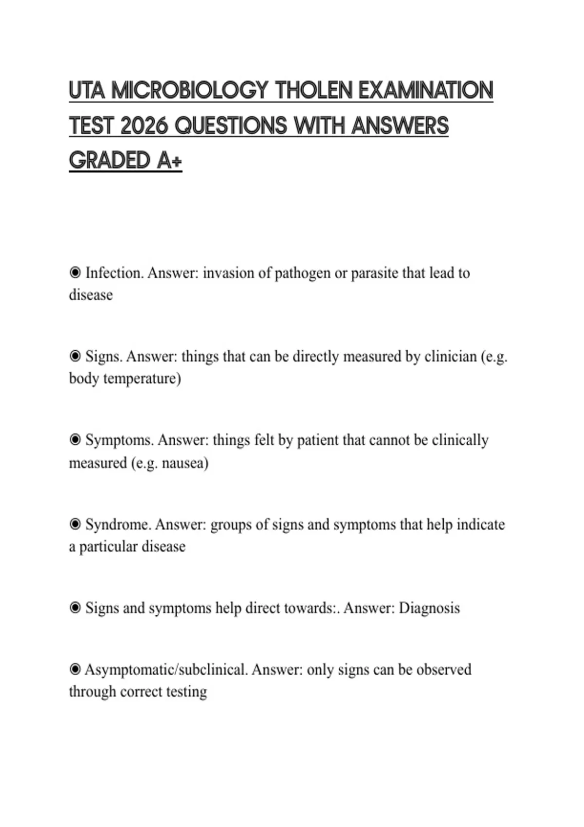 UTA MICROBIOLOGY THOLEN EXAMINATION TEST 2026 QUESTIONS WITH ANSWERS GRADED A+
