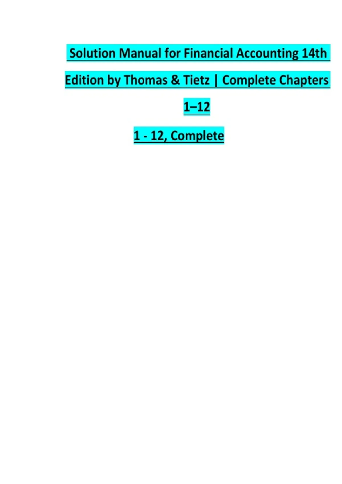 Solution Manual for Financial Accounting 14th Edition by Thomas & Tietz | Complete Chapters 1–12 1 - 12, Complete