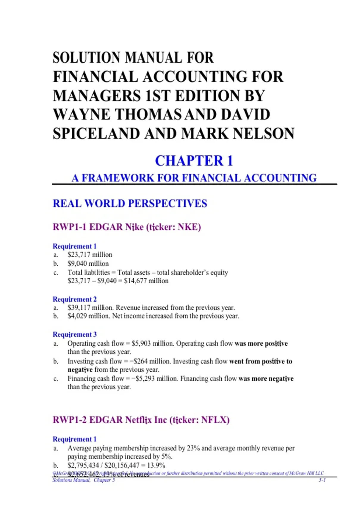 Solutions Manual for Financial Accounting for Managers 1st Edition Thomas Spiceland Nelson Complete