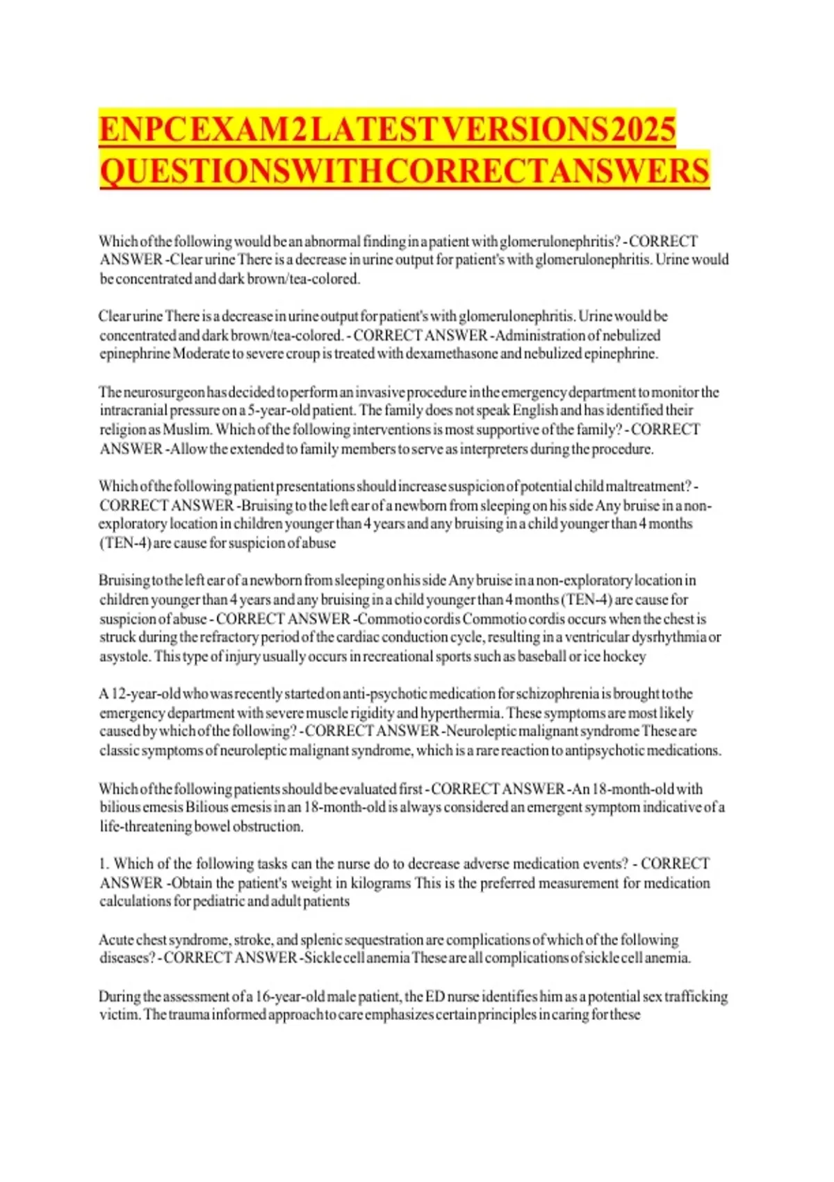 ENPC EXAM 2 LATEST VERSIONS 2025 QUESTIONS WITH CORRECT ANSWERS
