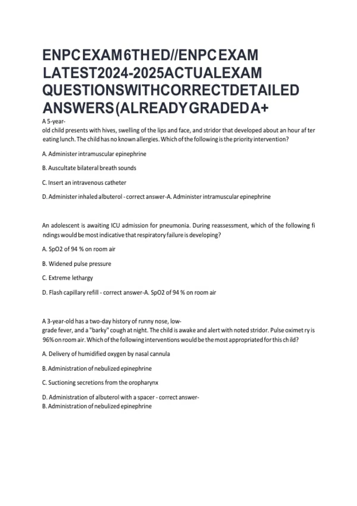 ENPC EXAM 6TH ED-ENPC EXAM LATEST ACTUAL EXAM QUESTIONS WITH CORRECT ANSWERS.