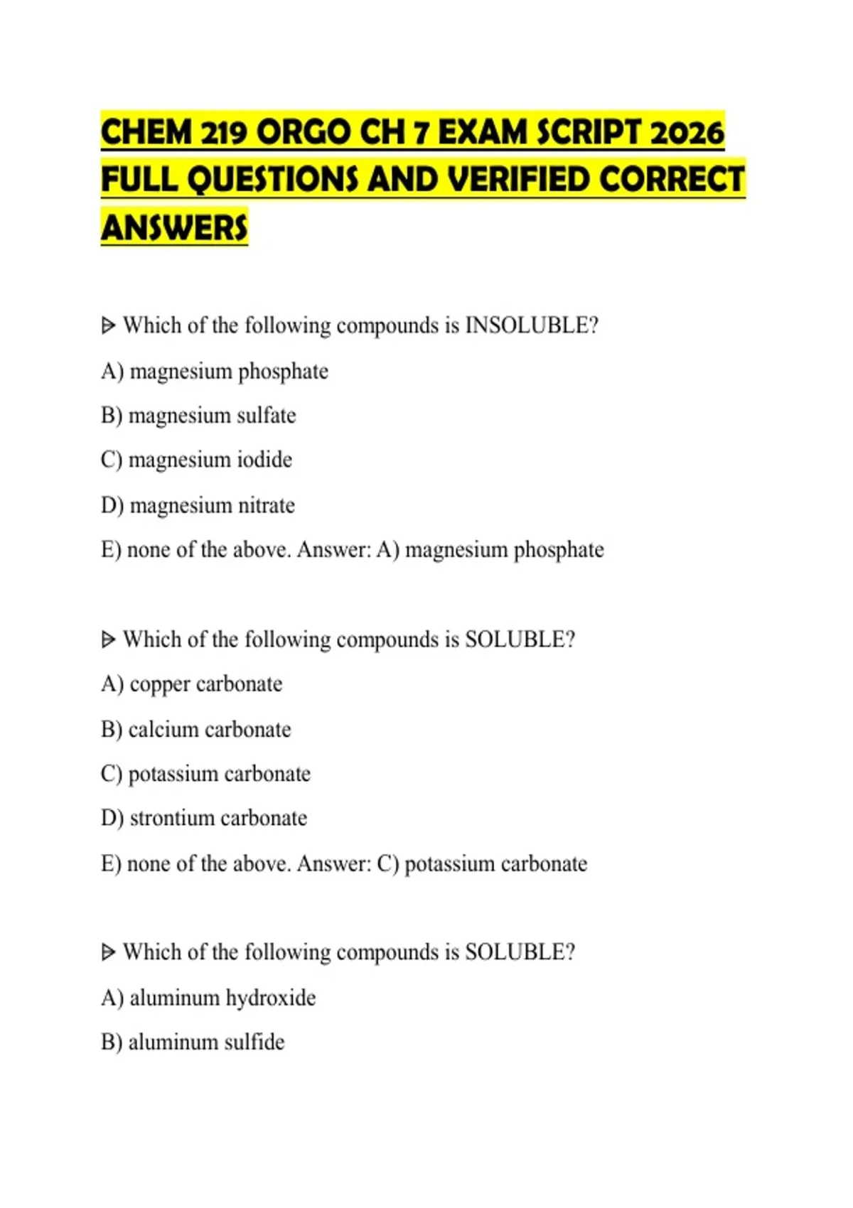 ⩥ Which of the following compounds is INSOLUBLE?