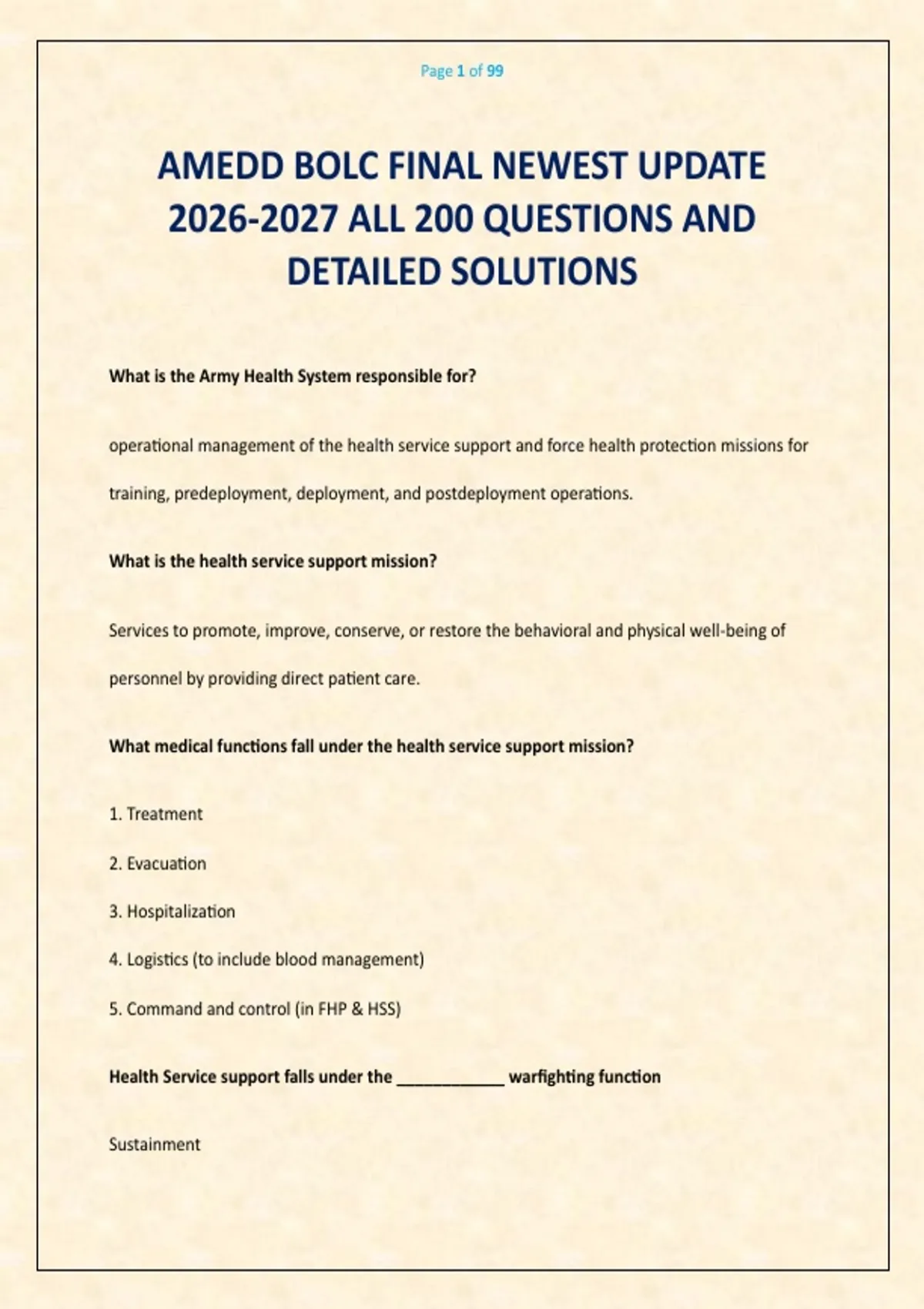 AMEDD BOLC FINAL NEWEST UPDATE ALL 200 QUESTIONS AND DETAILED SOLUTIONS