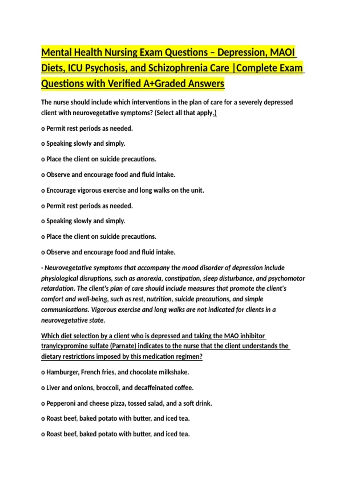 Diets, ICU Psychosis, and Schizophrenia Care |Complete Exam