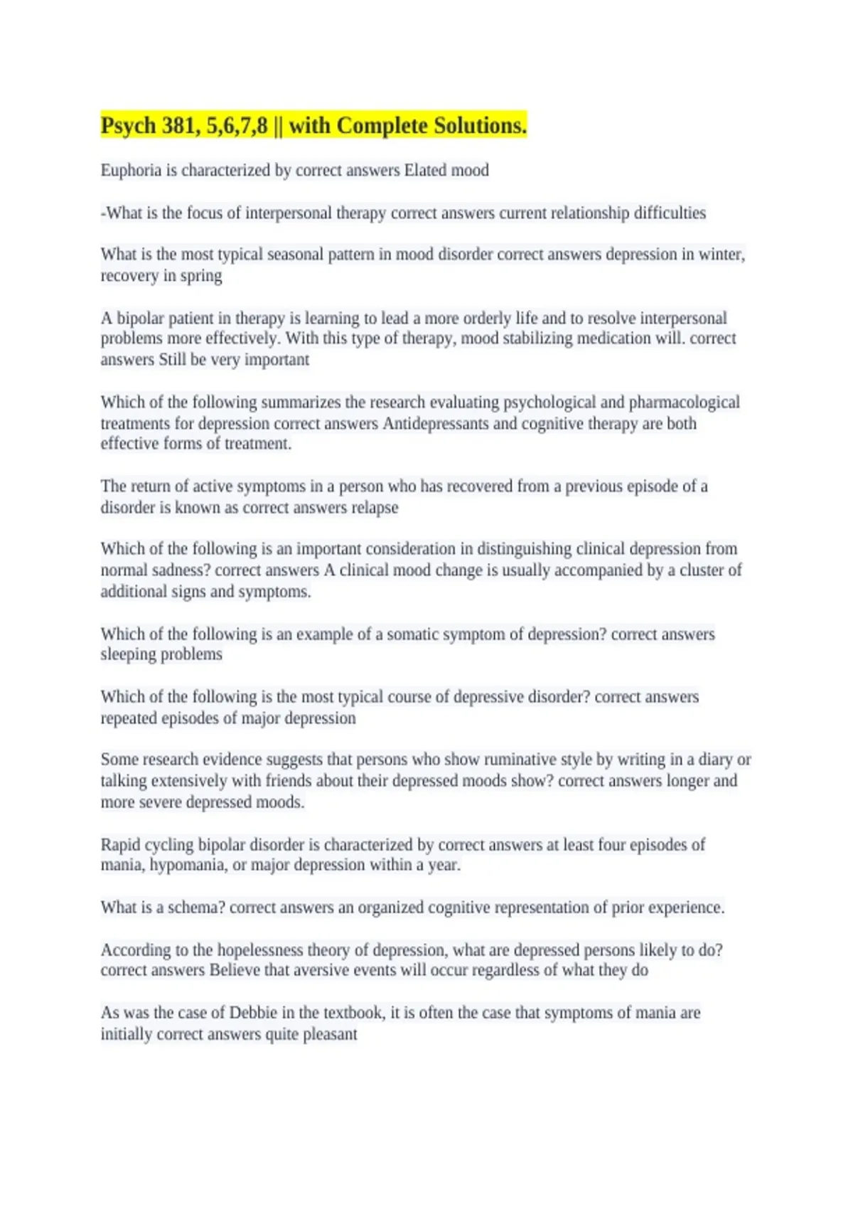 Psych 381, 5,6,7,8 || with Complete Solutions.