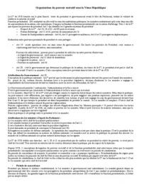 – Art 20 : c'est le gouvernement qui détermine la politique de la nation. Au terme de la C°, le président n'est pas le chef de