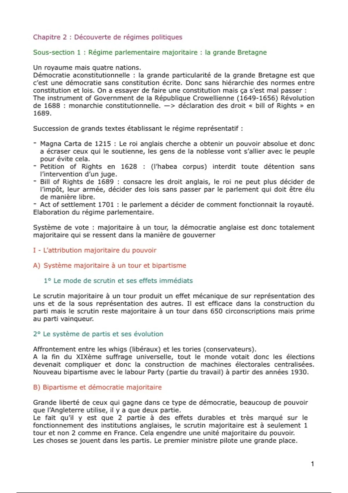 fonctionnement des institutions anglaises, le scrutin majoritaire est à seulement 1