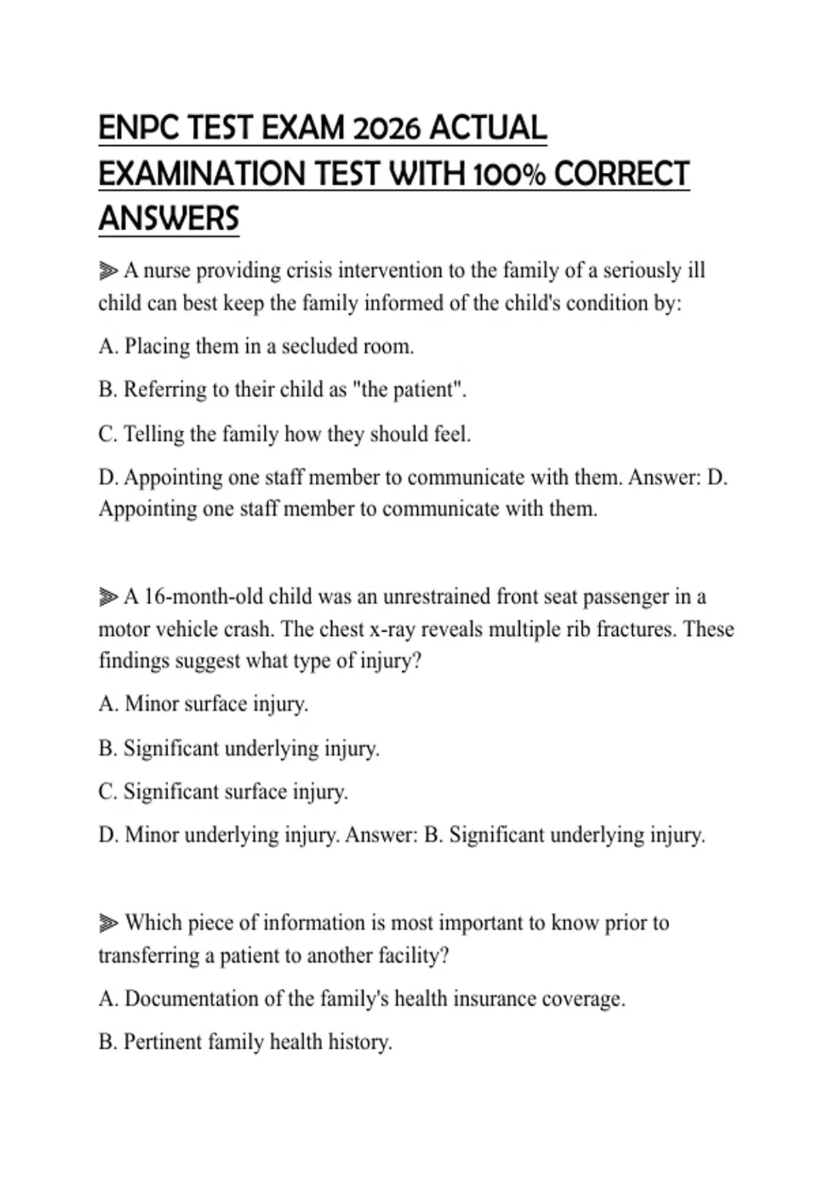 ENPC TEST EXAM 2026 ACTUAL EXAMINATION TEST WITH 100% CORRECT ANSWERS