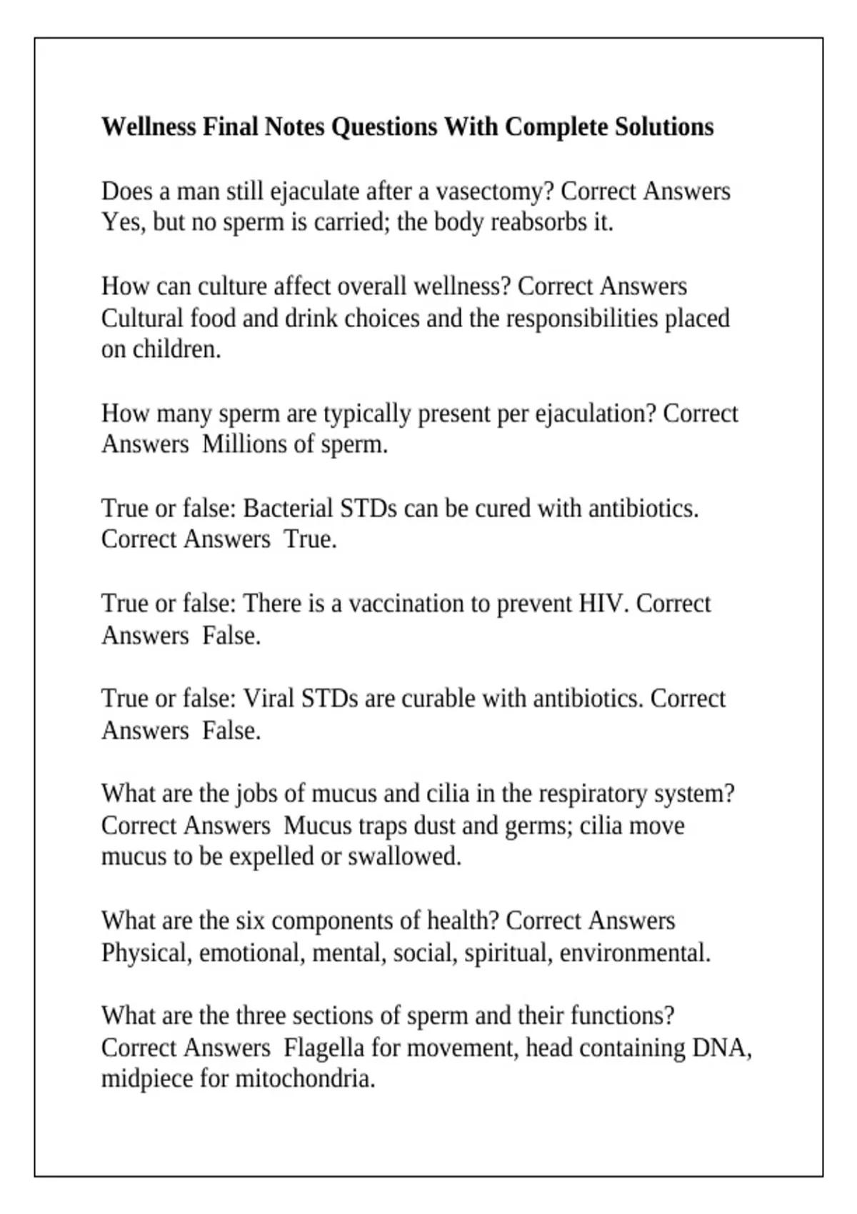 What are the six components of health? Correct Answers
