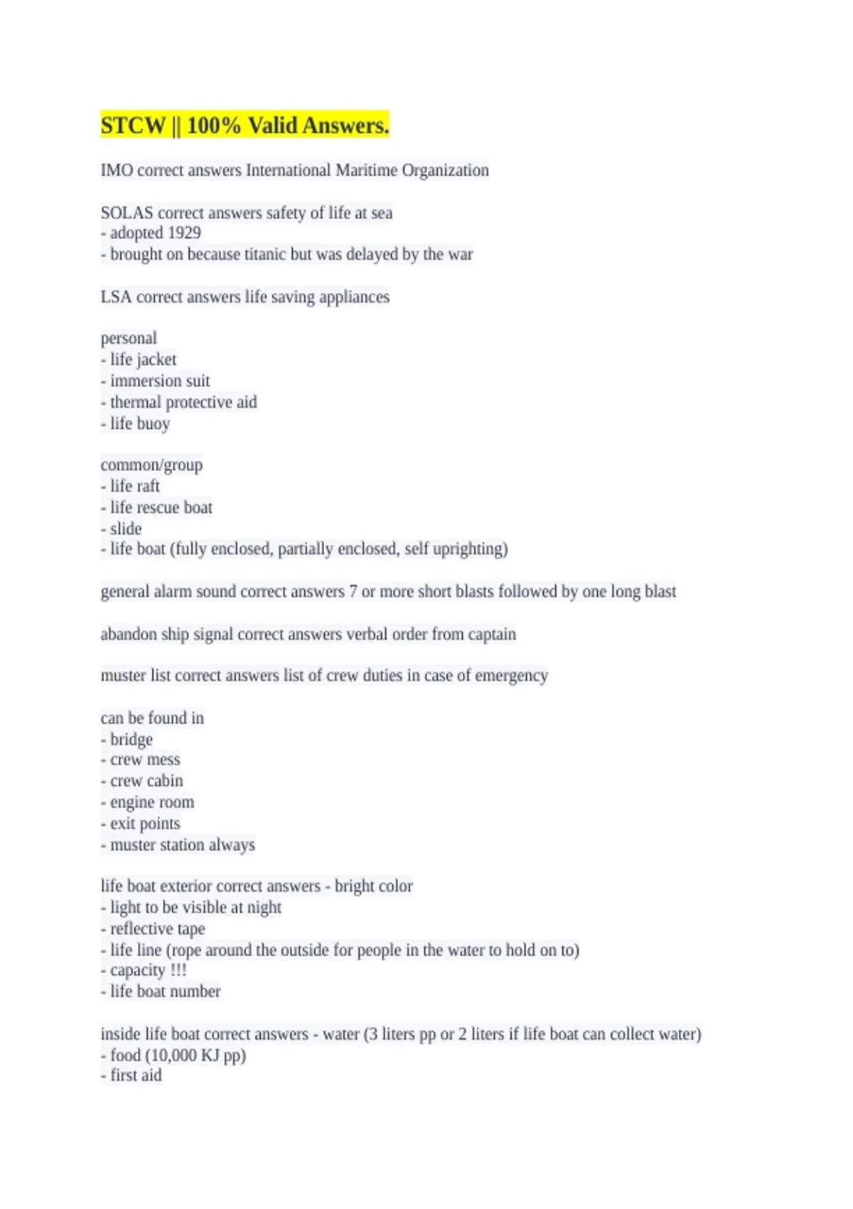 STCW || 100% Valid Answers.