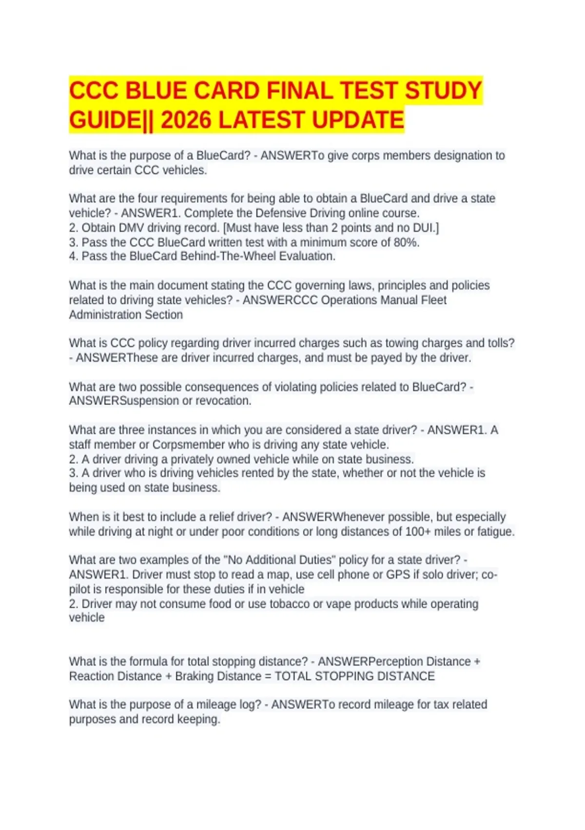 CCC BLUE CARD FINAL TEST STUDY GUIDE|| 2026 LATEST UPDATE