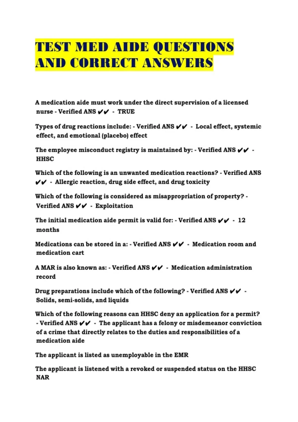 medication aides required contact information: - Verified ANS ✔✔ -