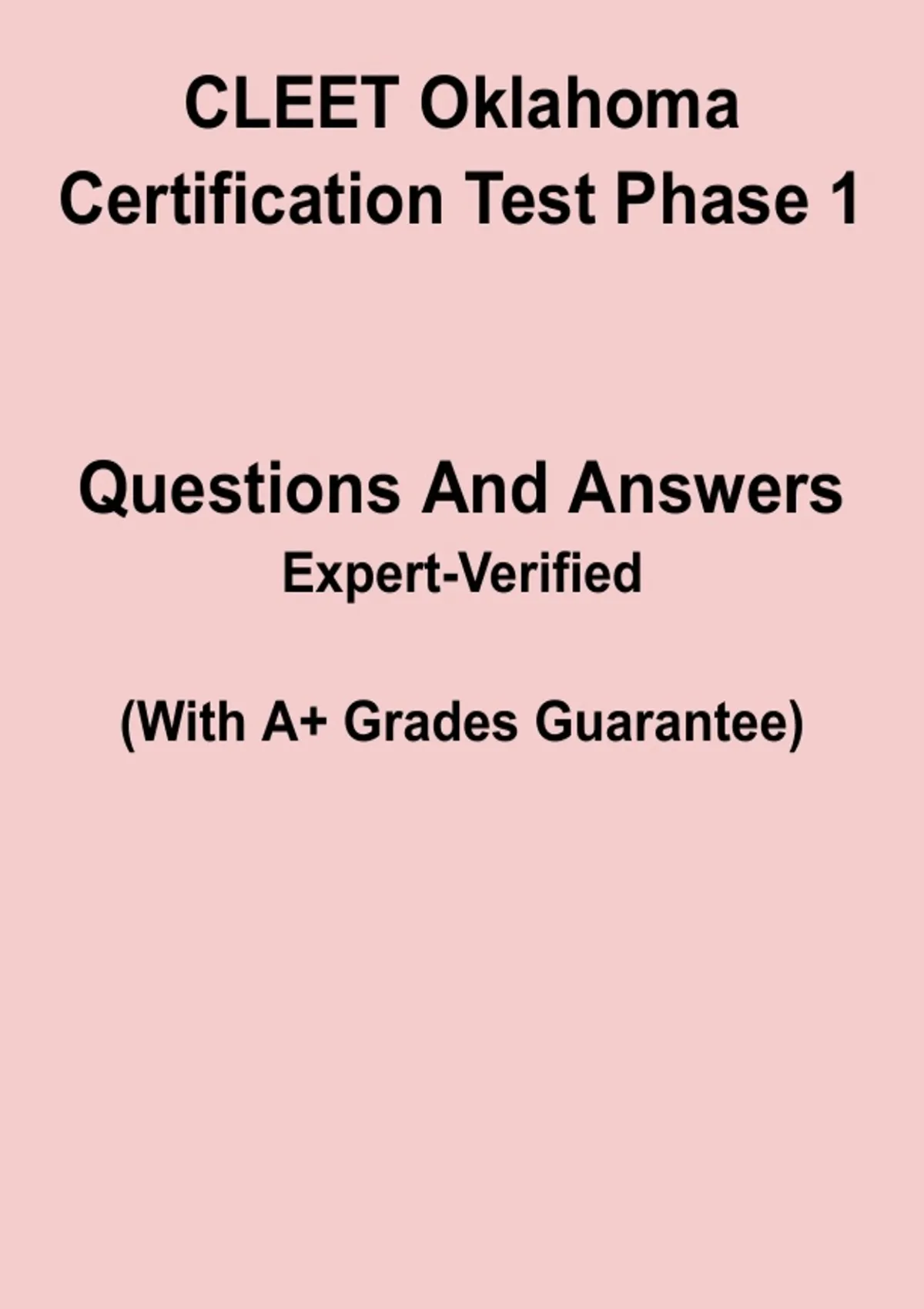 Prepare effectively for the CLEET Oklahoma Certification Test Phase 1 with this comprehensive study guide designed for aspiring law enforcement officers. This resource includes exam-style practice questions, detailed answers, and focused review material covering key topics such as Oklahoma criminal law, policing procedures, safety protocols, and situational judgment. Ideal for candidates seeking CLEET certification, this guide helps reinforce essential knowledge, improve exam readiness, and build confidence for success on the Oklahoma Phase 1 law enforcement exam.