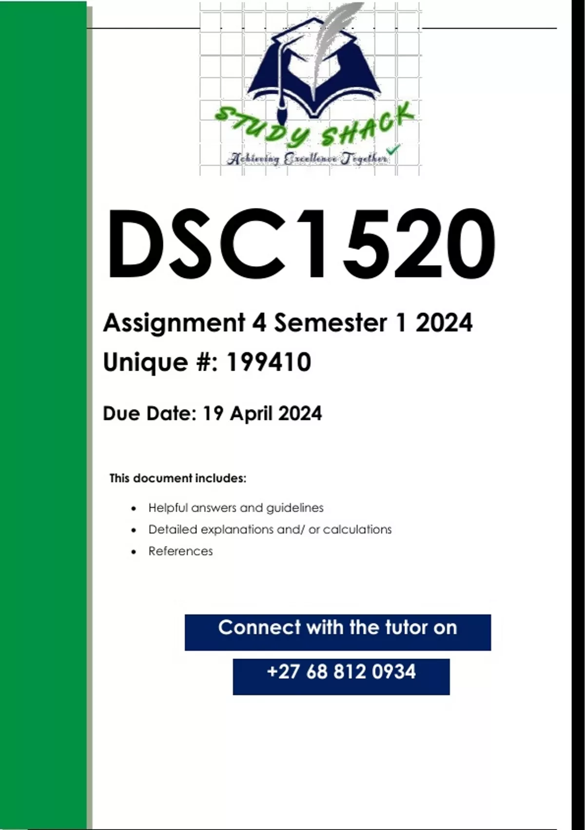 This document contains workings, explanations and solutions to the DSC1520 Assignment 4 (QUALITY ANSWERS) Semester 1 2024. For assistance call or us on 0.6.8..8.1.2..0.9.3.4...