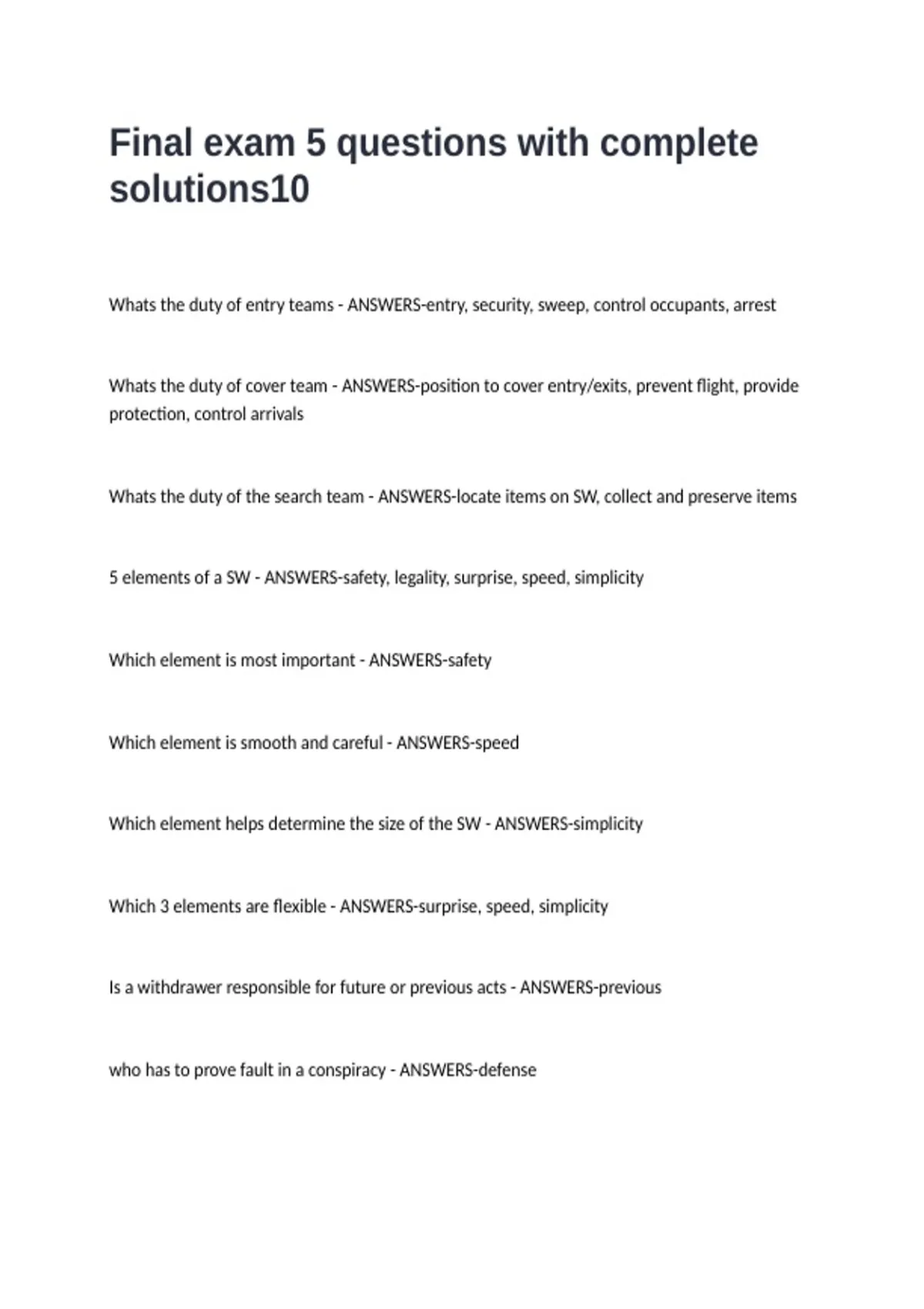 5 elements of a SW - ANSWERS-safety, legality, surprise, speed, simplicity