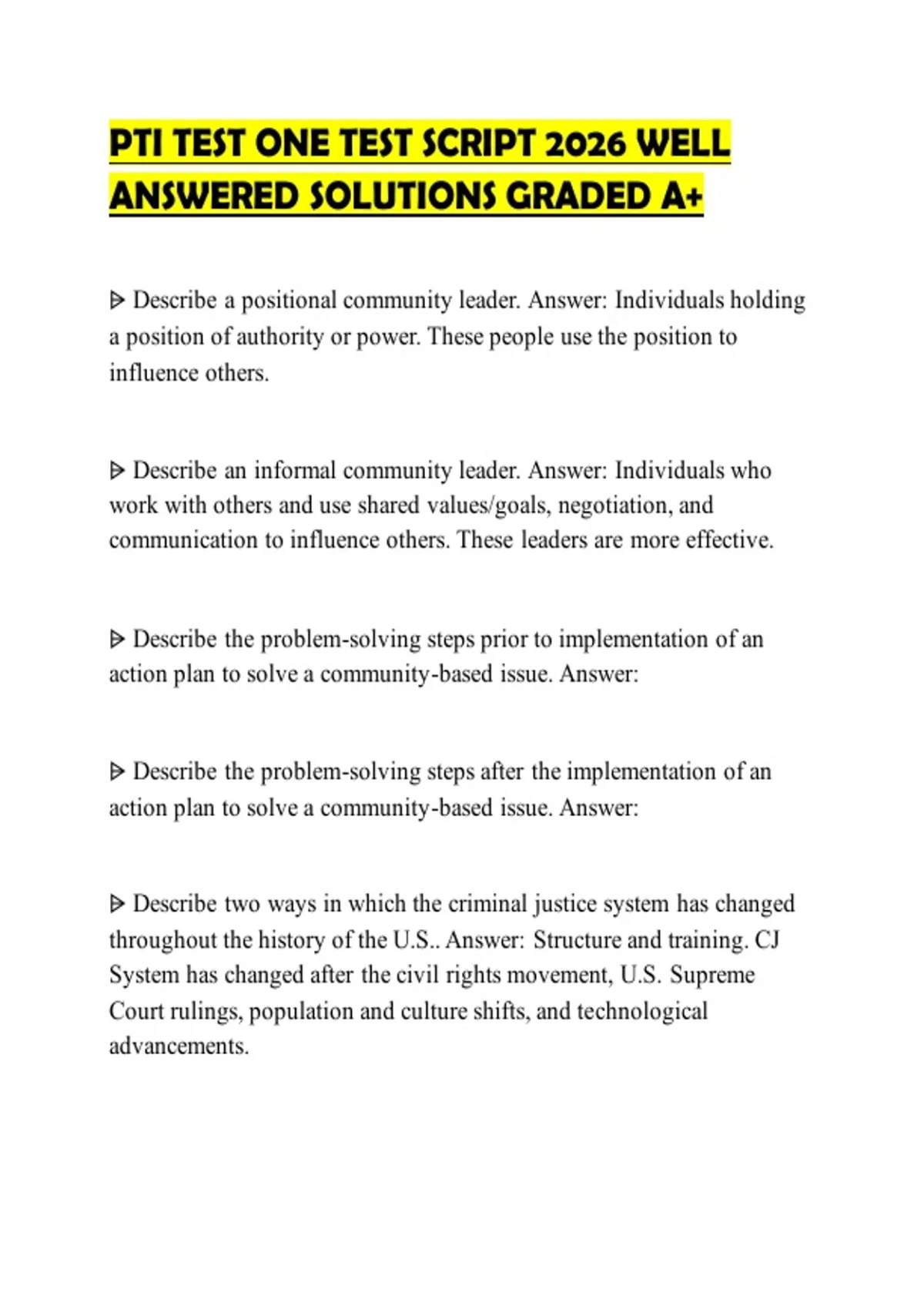 PTI TEST ONE TEST SCRIPT 2026 WELL ANSWERED SOLUTIONS GRADED A+