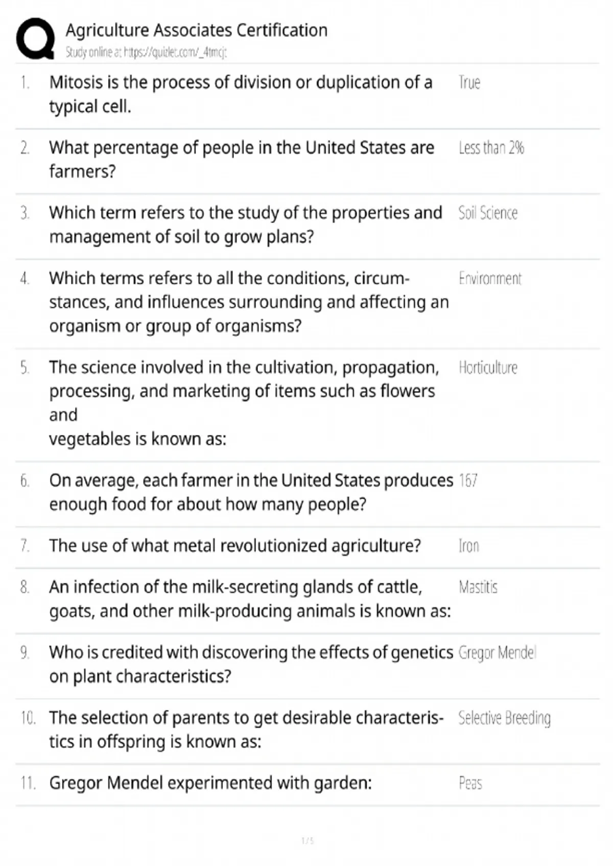 Agriculture Associate Certification / Score 100% / 2025 Update / Complete Study Guide