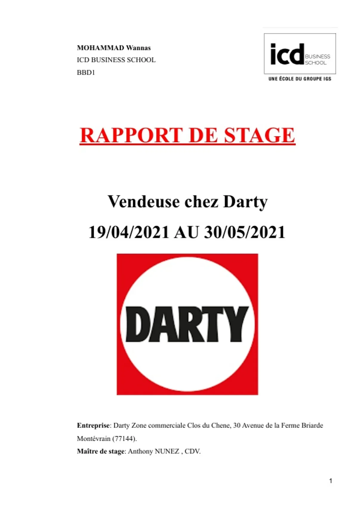 Rapport de stage Darty