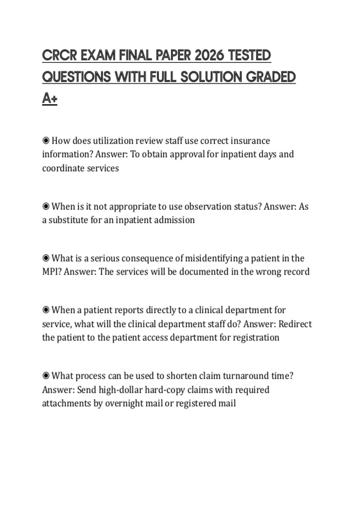 ◉ What is a valid reason for a payer to delay a claim? Answer: