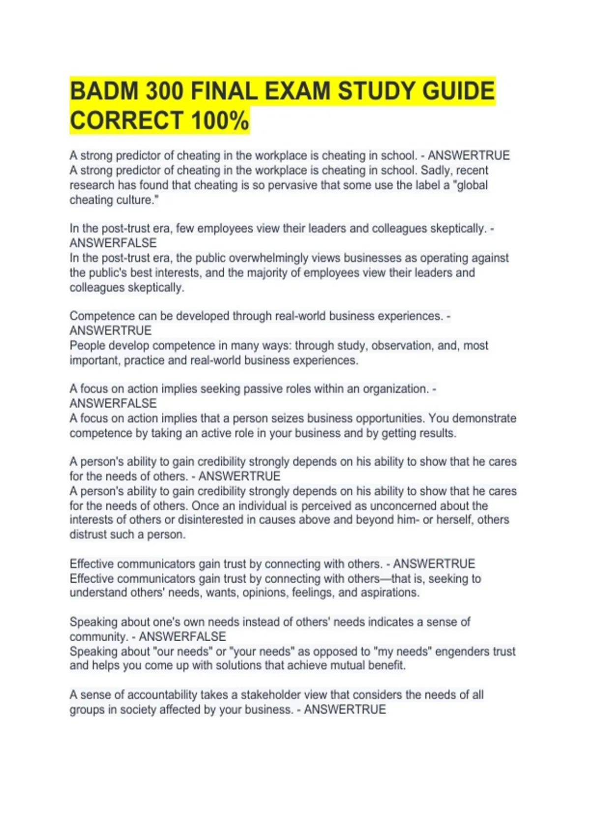 BADM 300 FINAL EXAM STUDY GUIDE CORRECT 100%