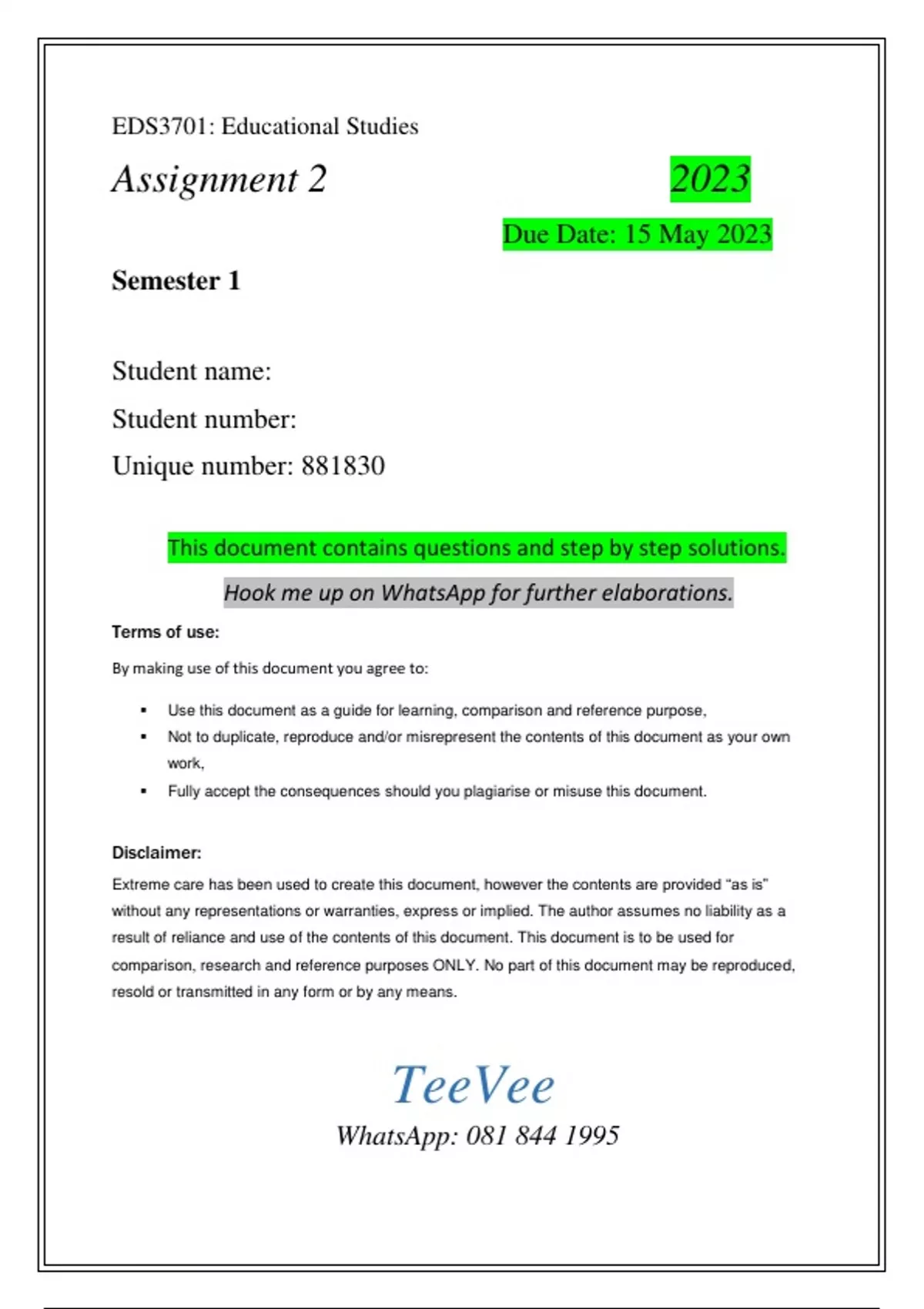 EDS3701 ASSIGNMENT 2-2023 Page 1 of 5 WhatsApp: 081 844 1995