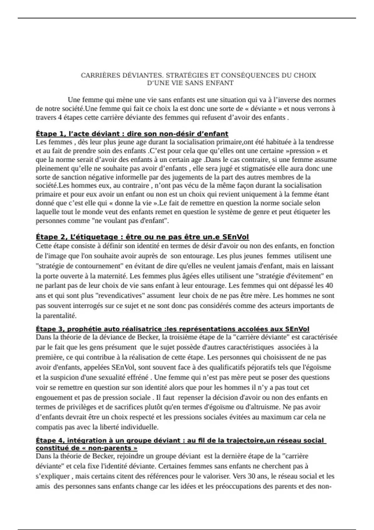 déviante" et cela fixe l'identité déviante. Certaines femmes sans enfants ne cherchent pas à