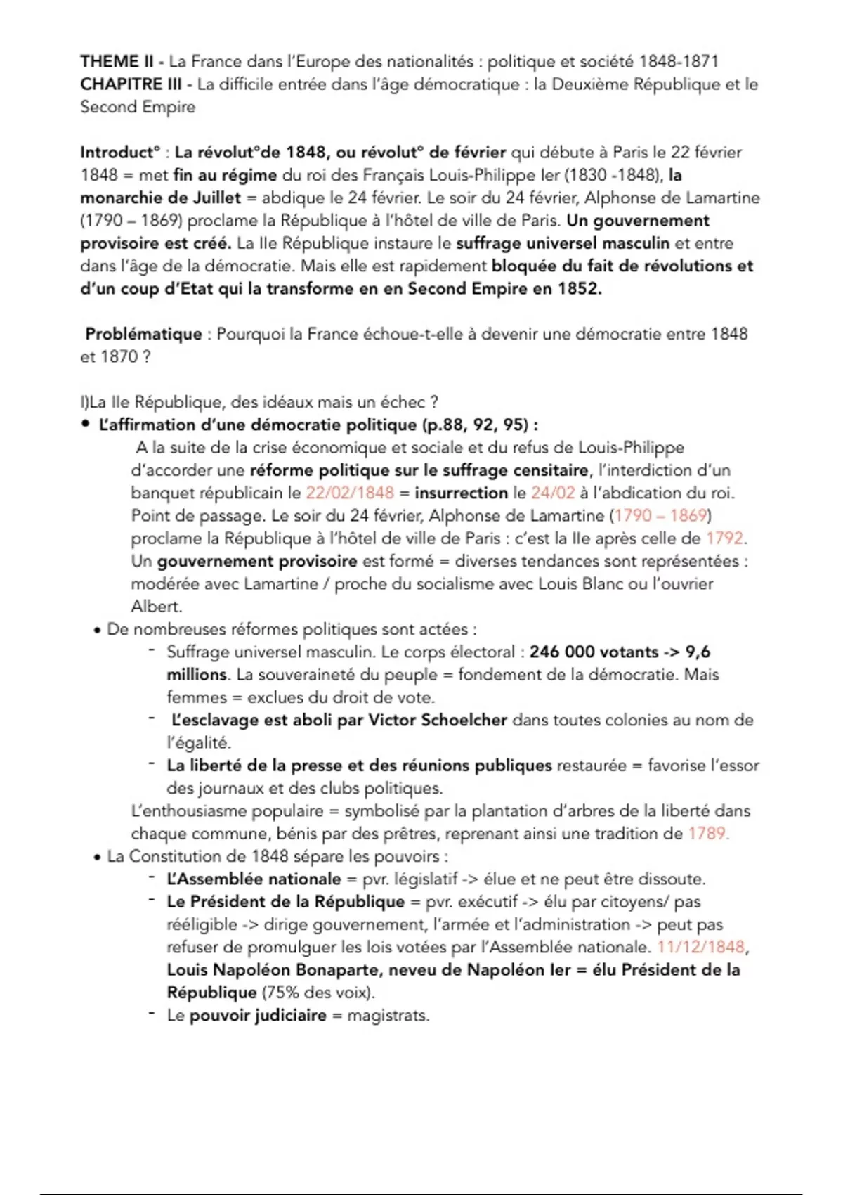 • La Deuxième République, tournant réactionnaire et n :