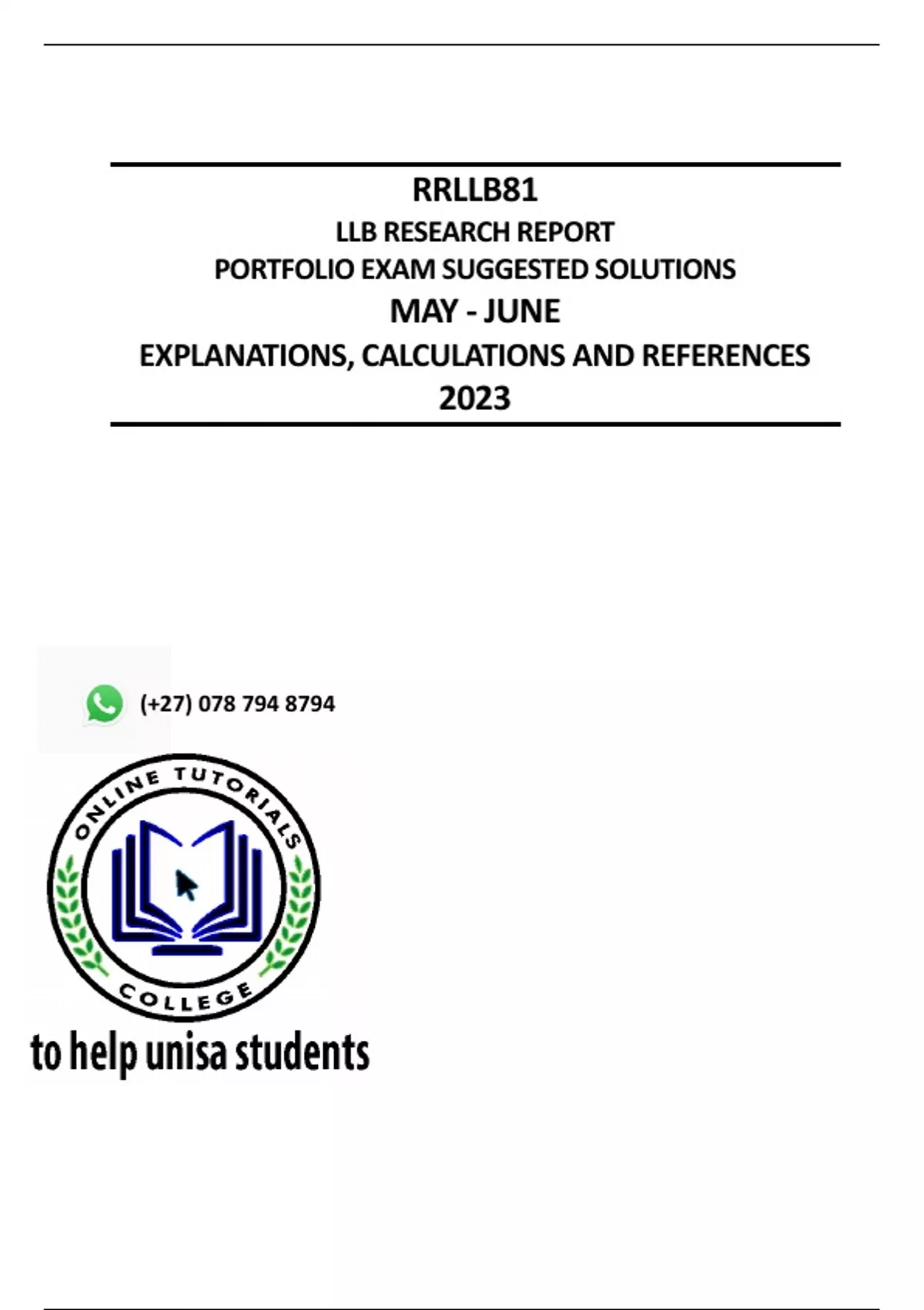 RRLLB81 - PORTFOLIO EXAM SOLUTIONS (MAY/JUNE - 2023)
