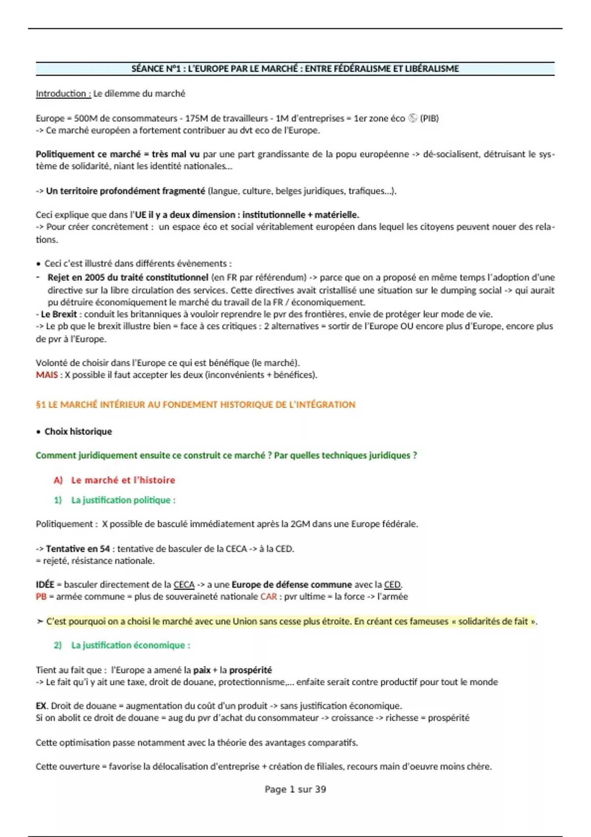 SÉANCE N°1 : L’EUROPE PAR LE MARCHÉ : ENTRE FÉDÉRALISME ET LIBÉRALISME