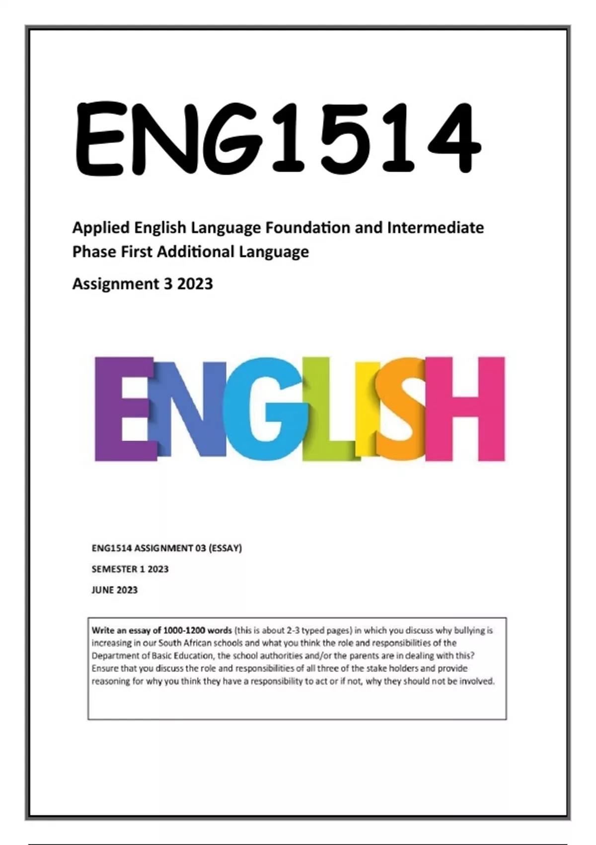 ENG1514 Assignment 3 2023 Answers