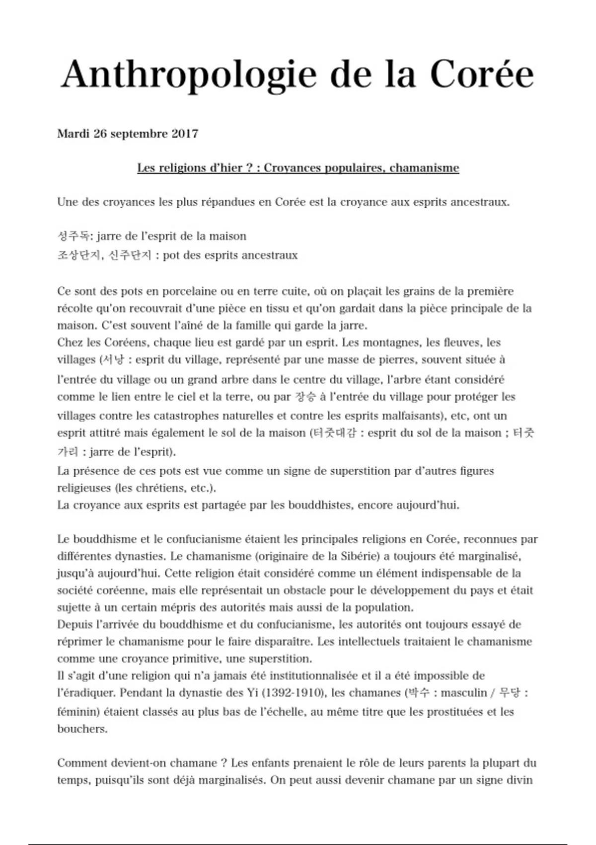 Ce cours traite de l’anthropologie de la Corée du Sud.