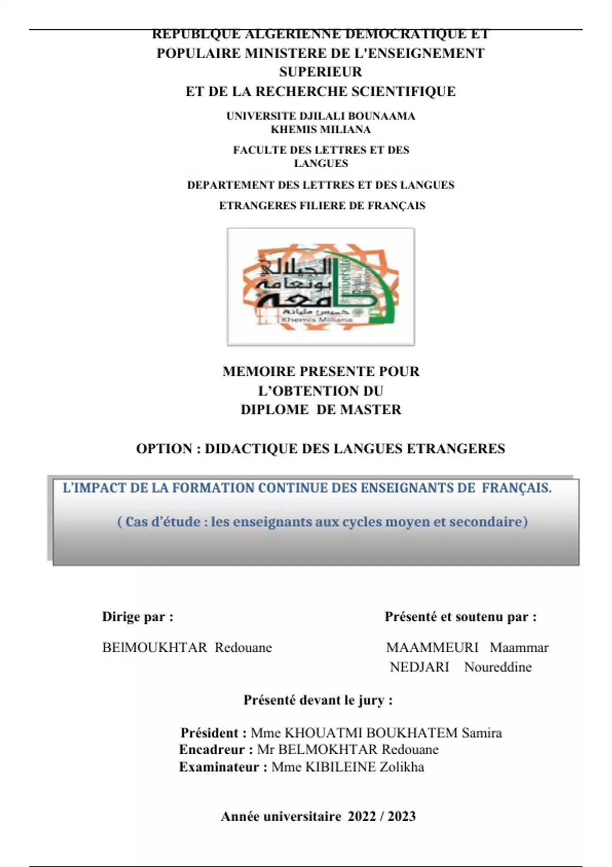 L’IMPACT DE LA FORMATION CONTINUE DES ENSEIGNANTS DE FRANÇAIS.