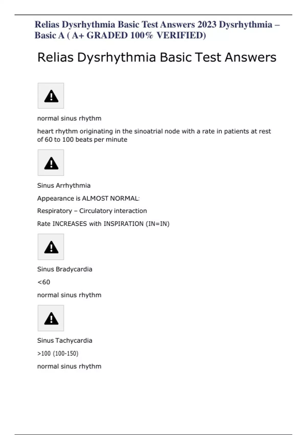 Relias Dysrhythmia Basic Test Answers 2023 Dysrhythmia – Basic A ( A+ GRADED 100% VERIFIED)