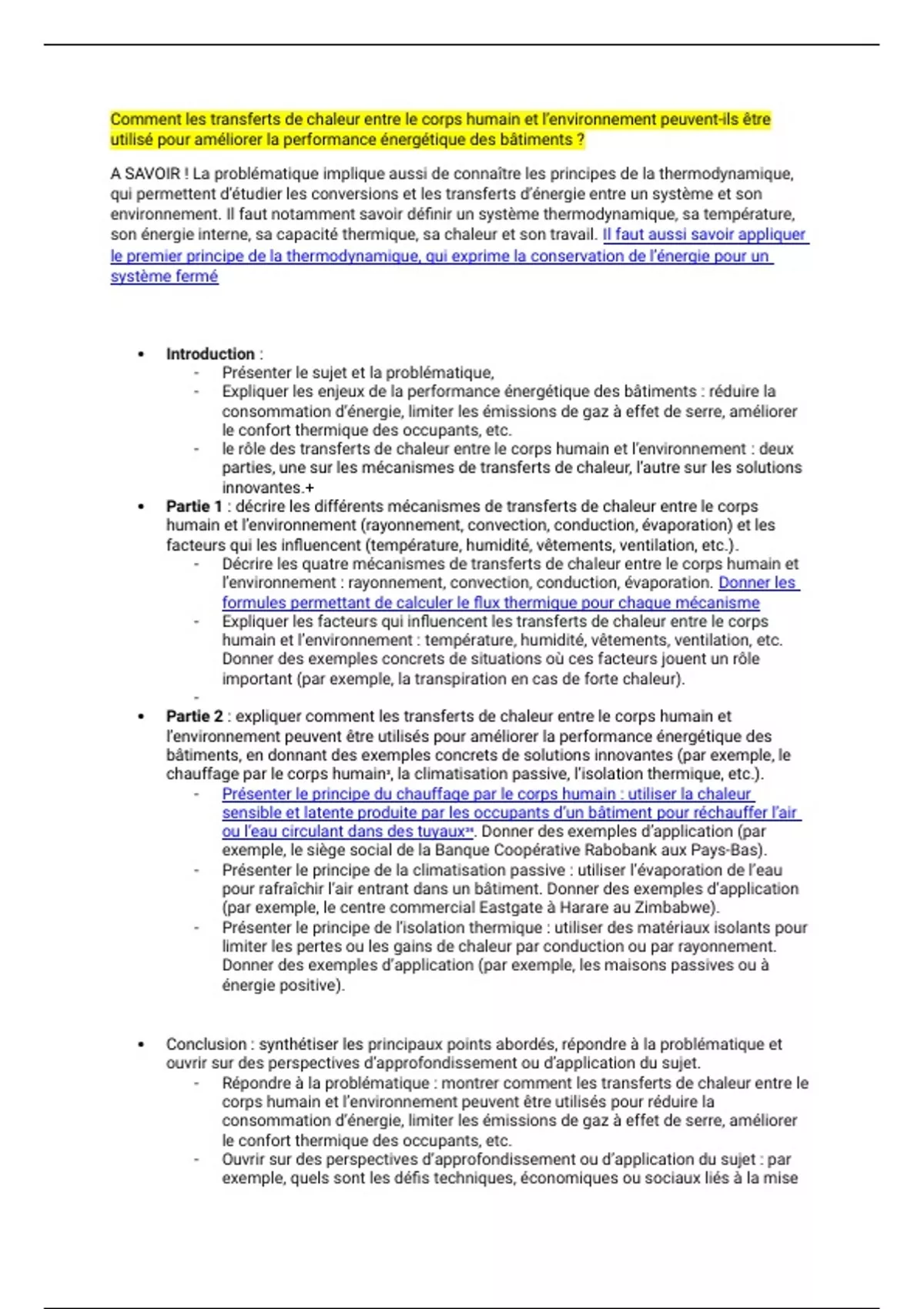 - Répondre à la problématique : montrer comment les transferts de chaleur entre le