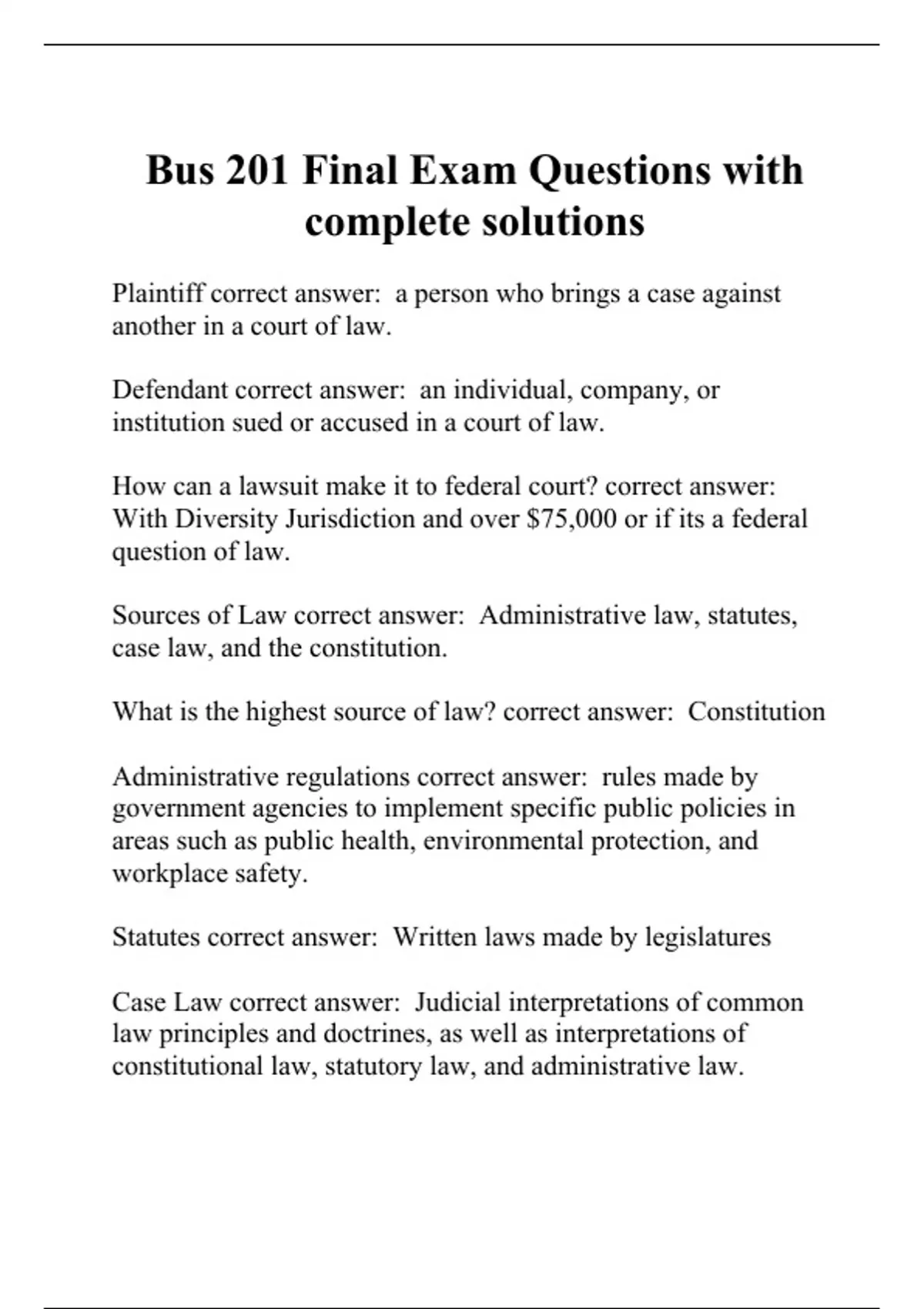 Sources of Law correct answer: Administrative law, statutes,