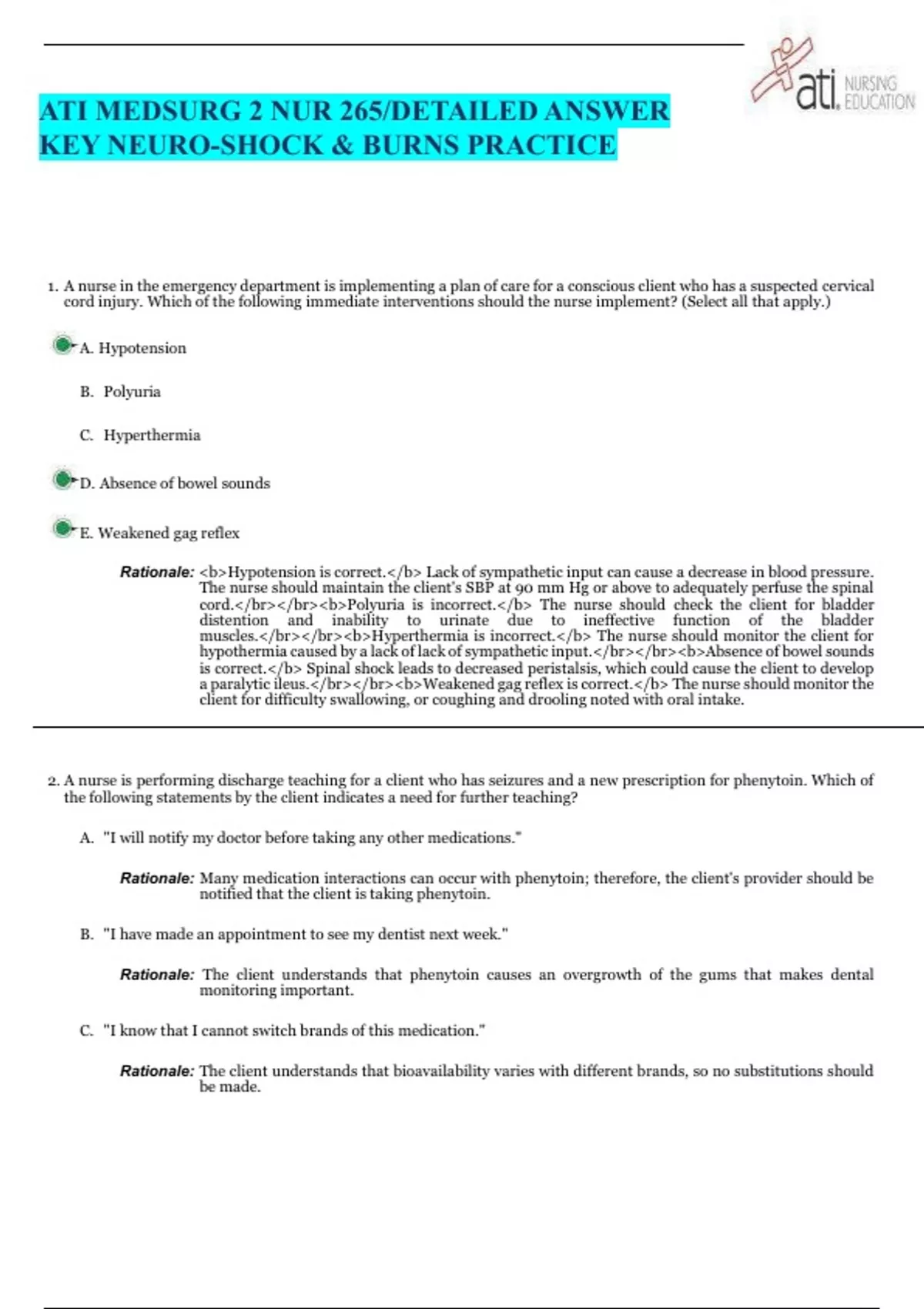 KEY NEURO-SHOCK & BURNS PRACTICE